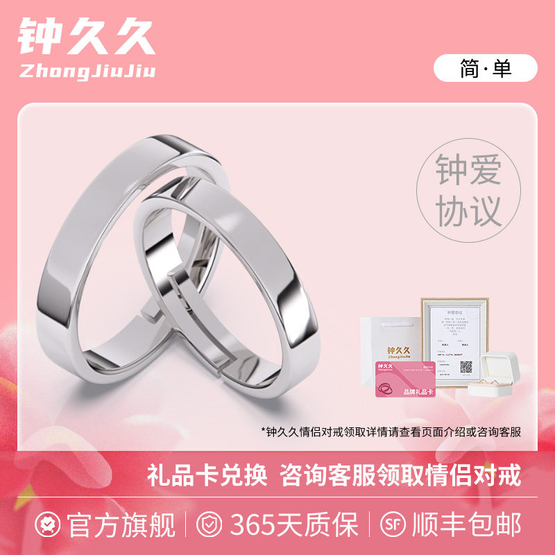 📚 钟久久情侣对戒简单纯银戒指女素圈情人节新年礼物送定制钟爱协议