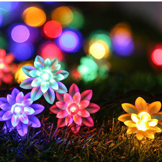 📚 led太阳能灯串荷花灯串双层莲花花朵灯串庭院装饰灯彩灯