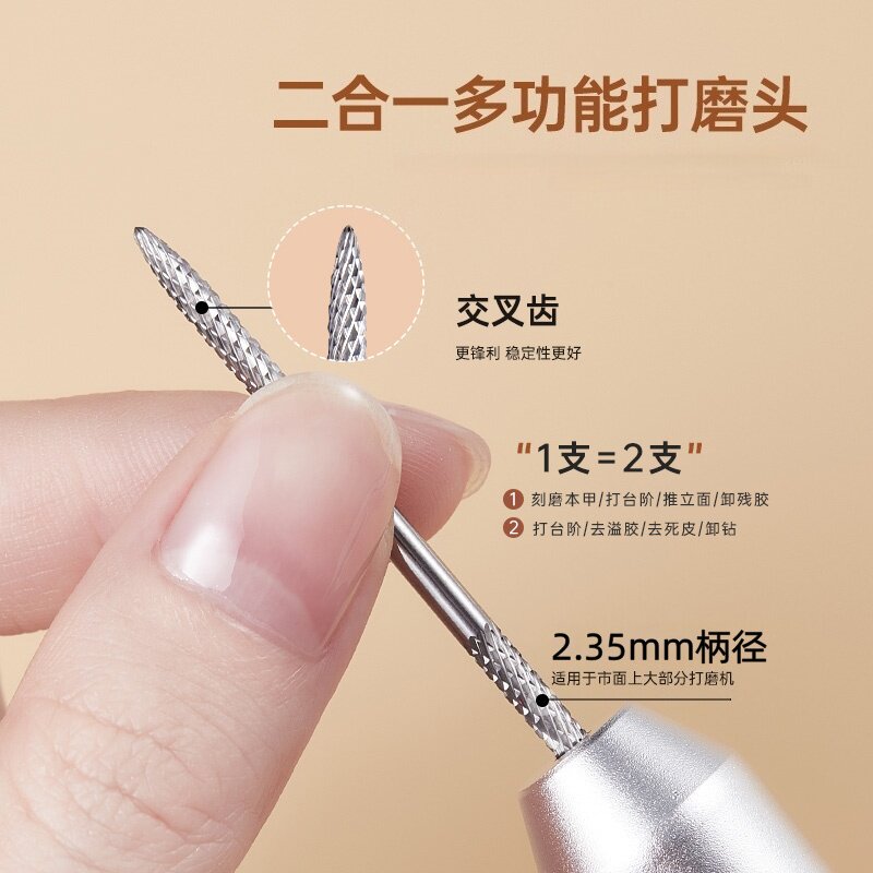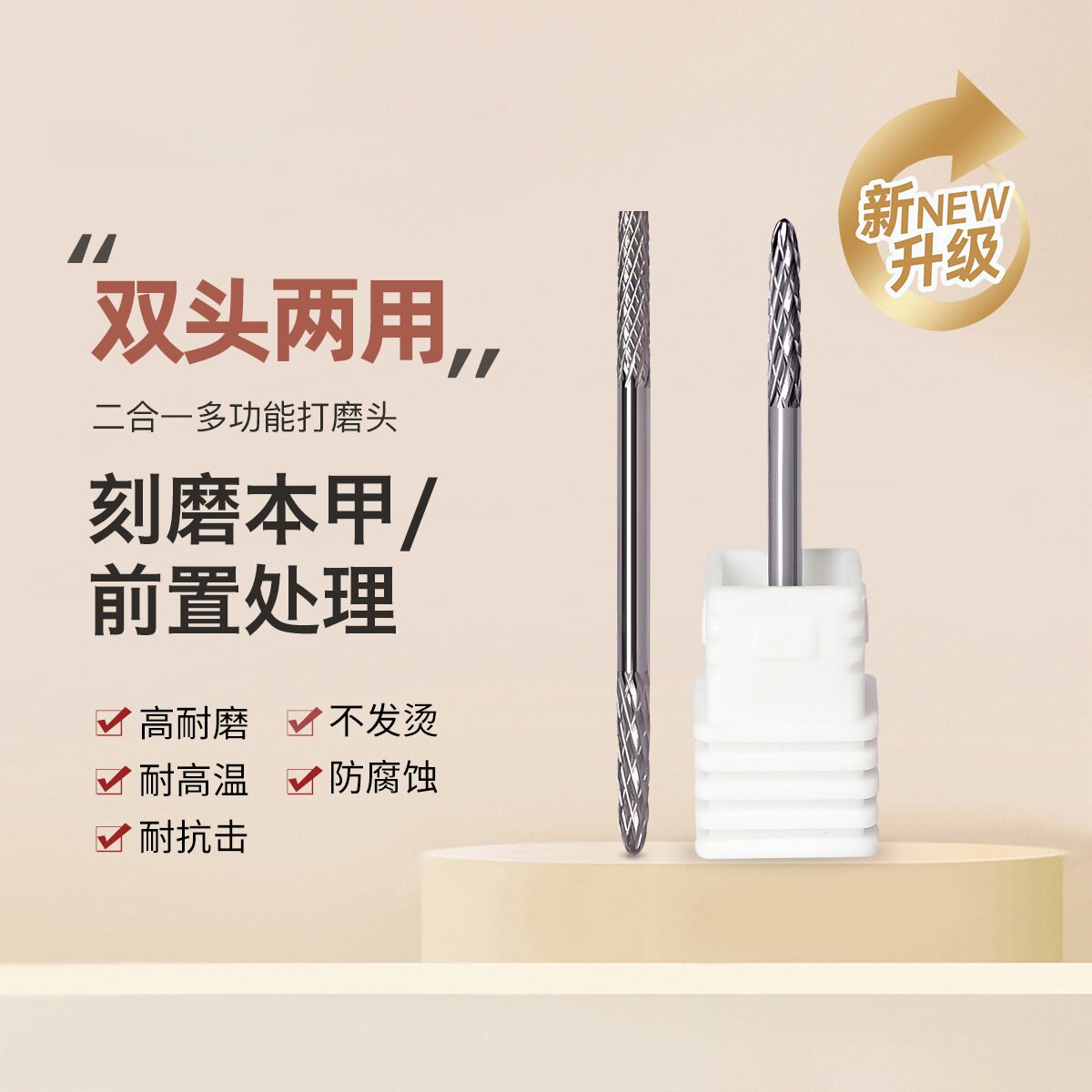 📚 双头多功能钨钢打磨头本甲刻磨台阶推立面卸钻除溢胶前置美甲工具