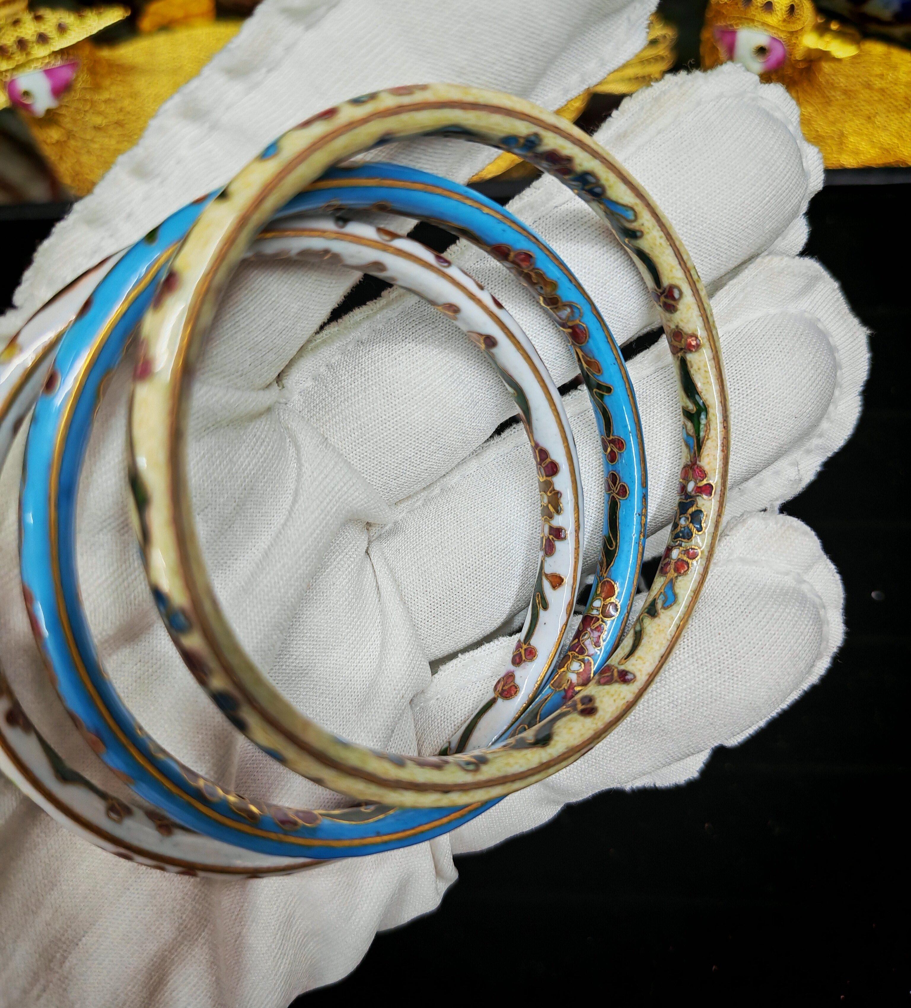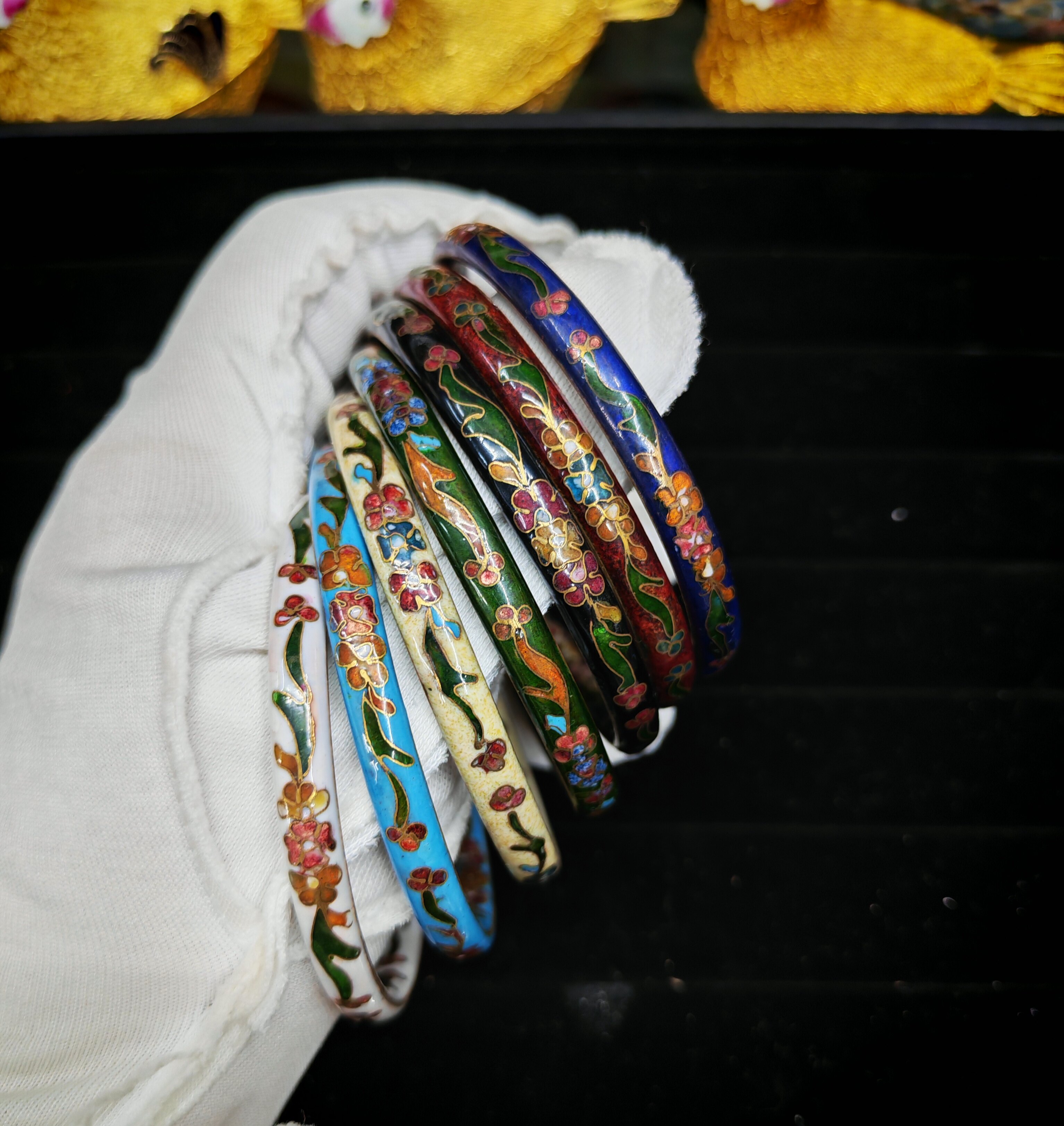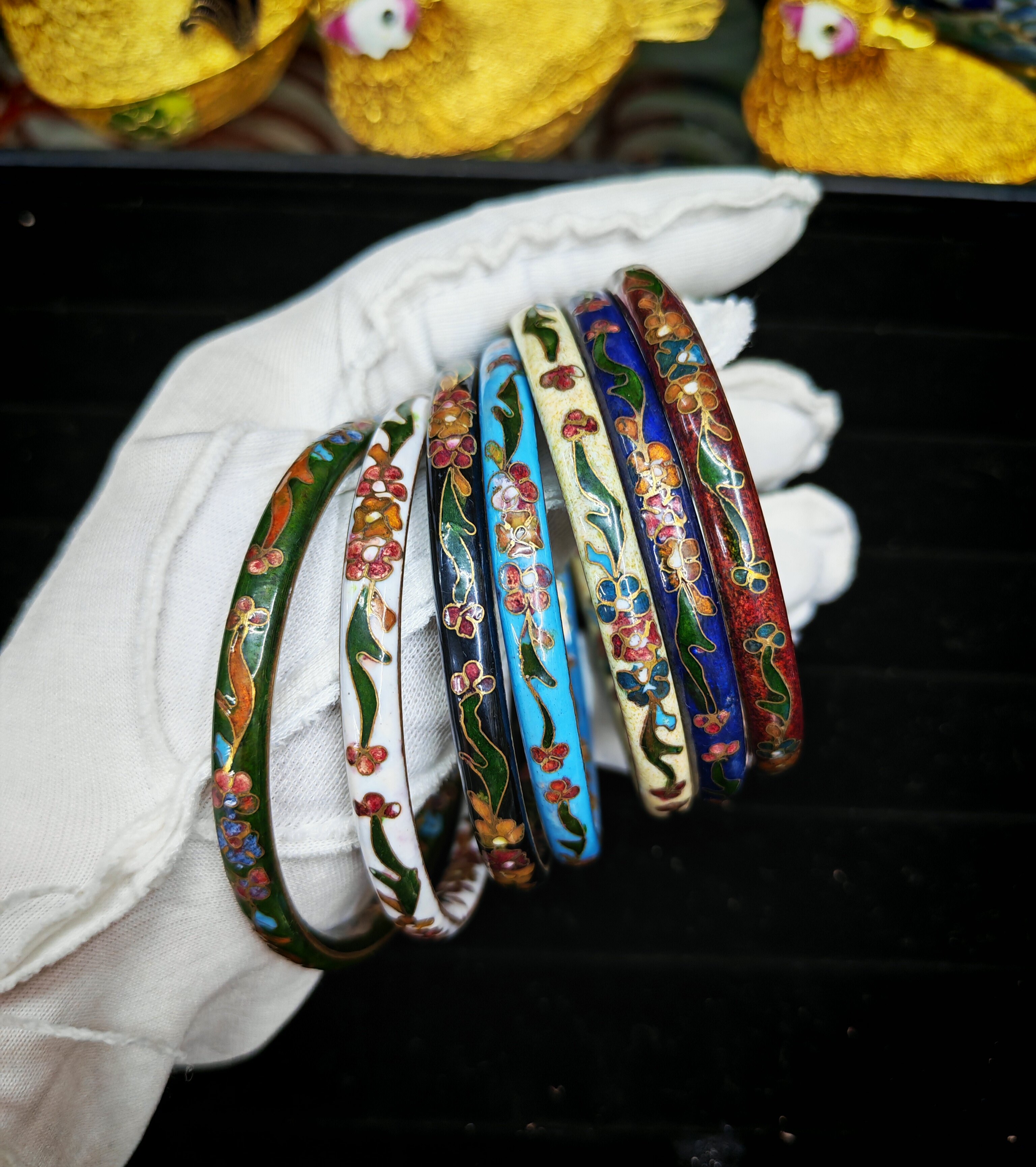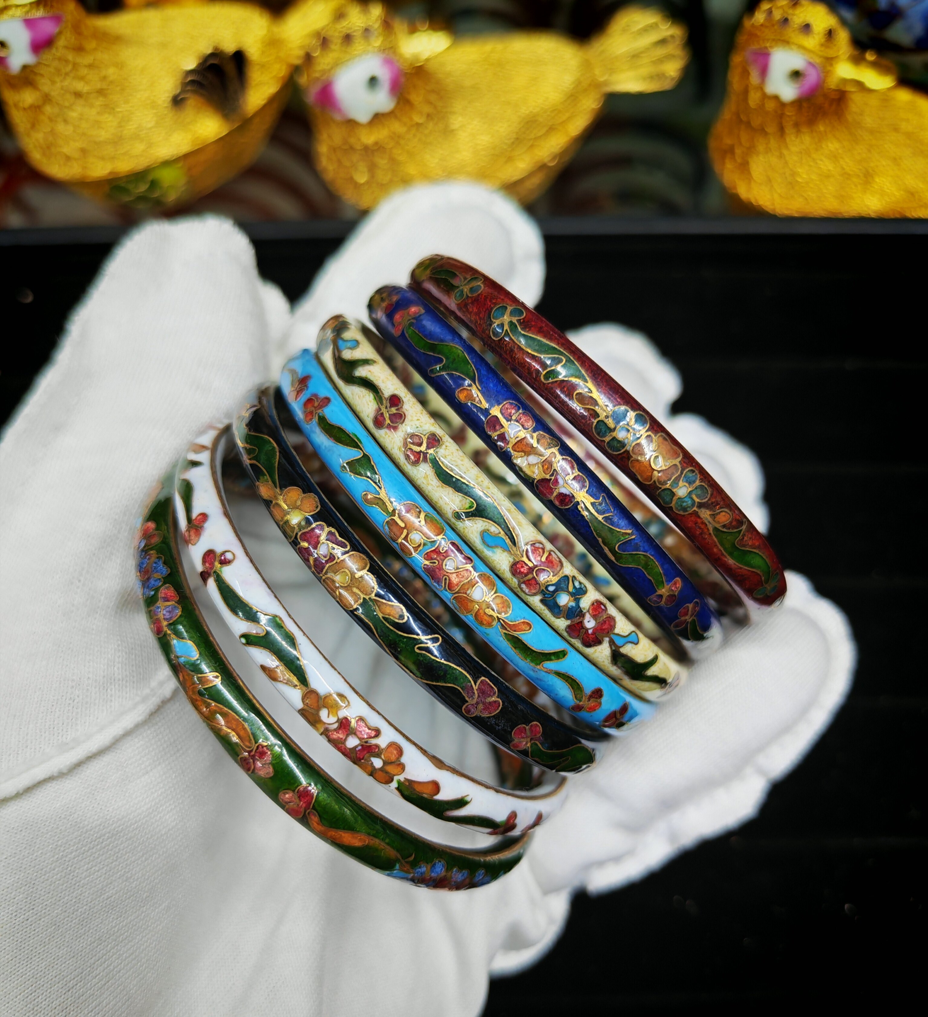 📚 回流创汇时期景泰蓝银兰套七手镯纯手工铜胎掐丝珐琅库存老货手镯