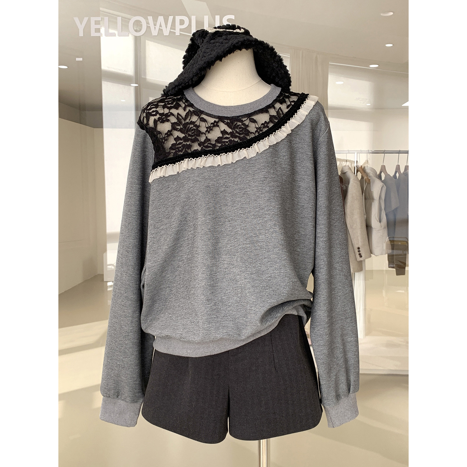📚 轻熟小性感蕾丝拼接圆领长袖T恤2026新款朦胧微透精致漂亮女人衫