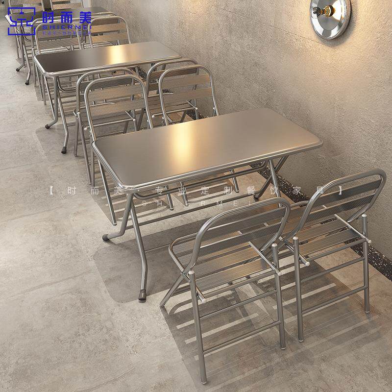 📚 Industrial style barbecue stall stainless steel folding table and chair set for outdoor use atKorean