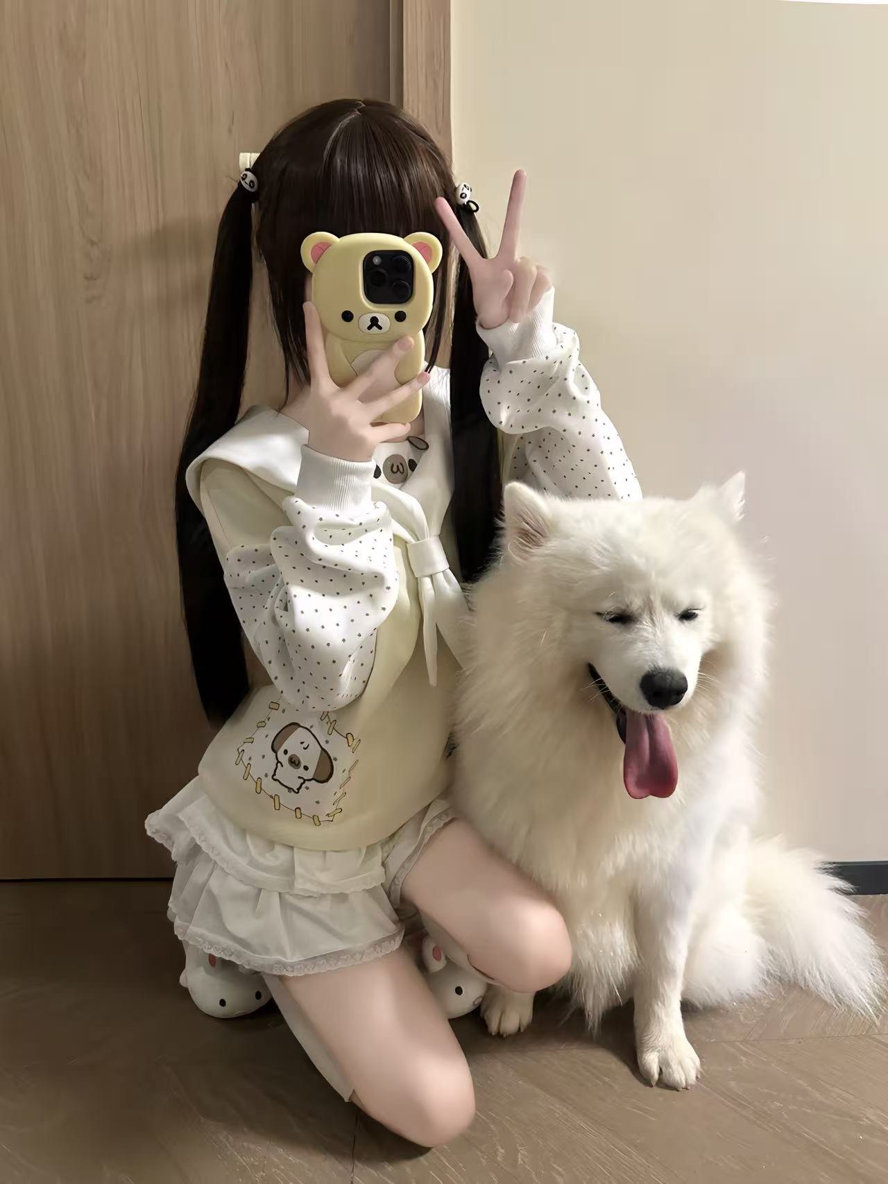 📚 Blurredbear原创日系软妹宅萌可爱软妹狗狗海军领卫衣秋冬外套