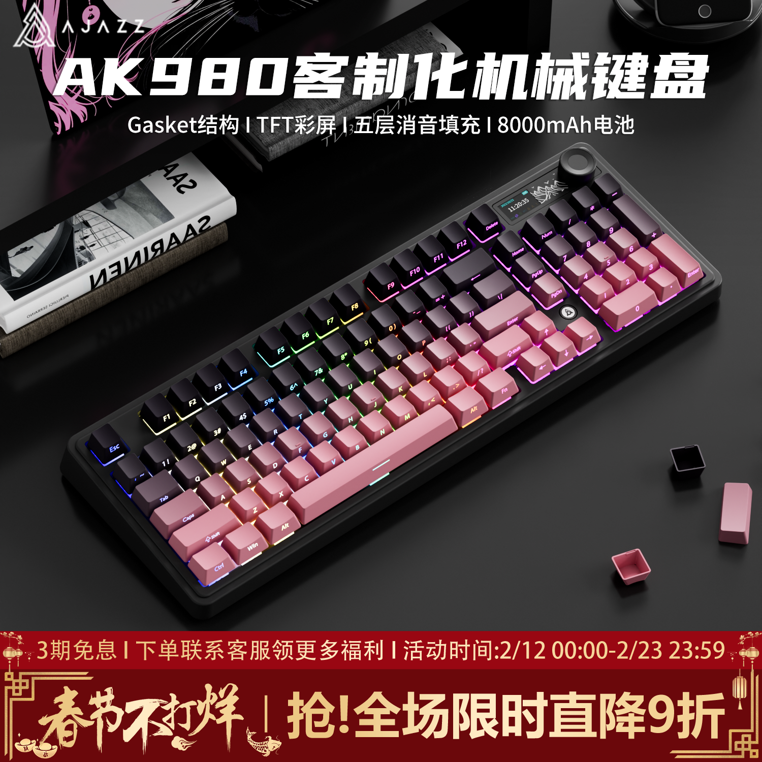 📚 黑爵ak980黑莓侧刻机械键盘无线蓝牙三模办公静音游戏电竞专用