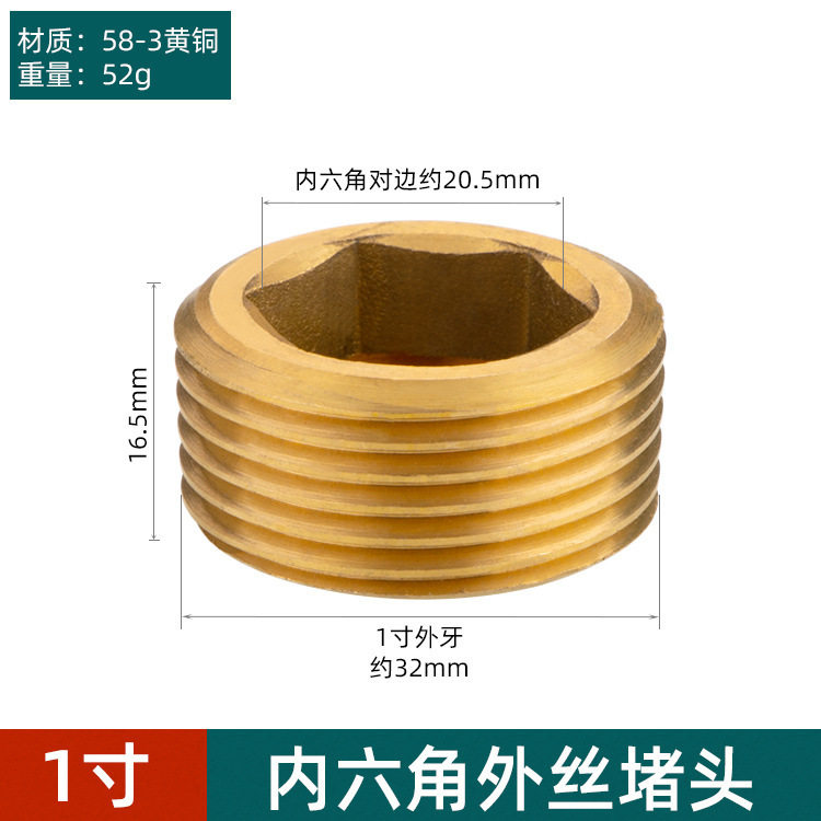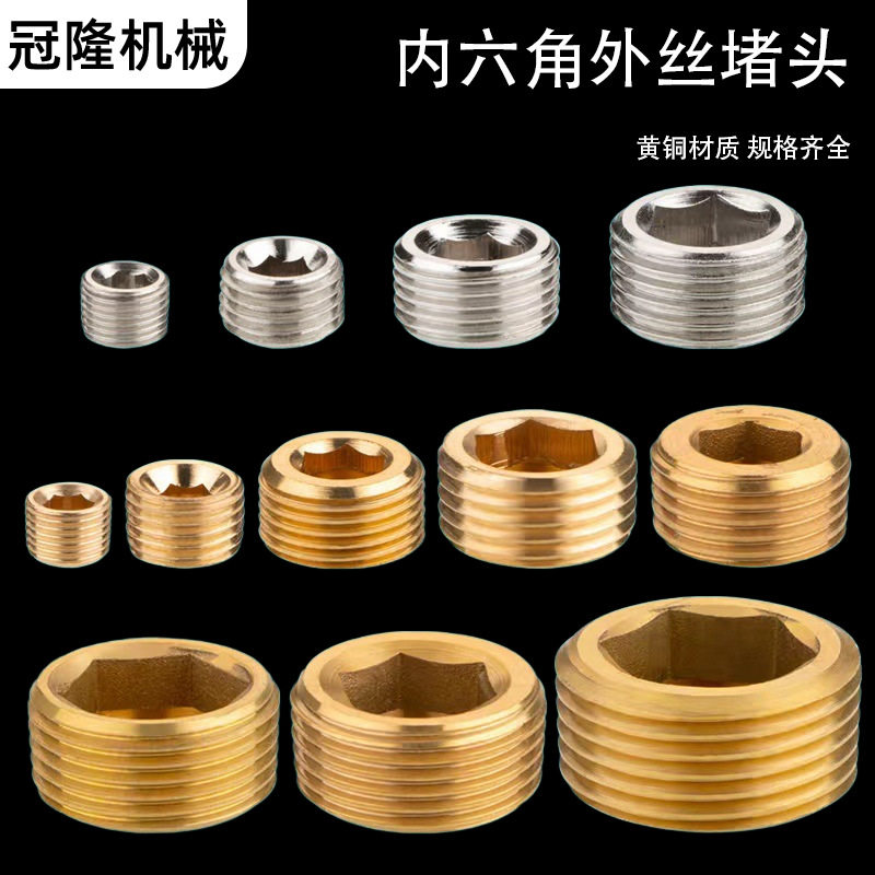 📚 全铜金属内六角外丝堵头螺纹四分六分内六角堵头外牙分水器堵头