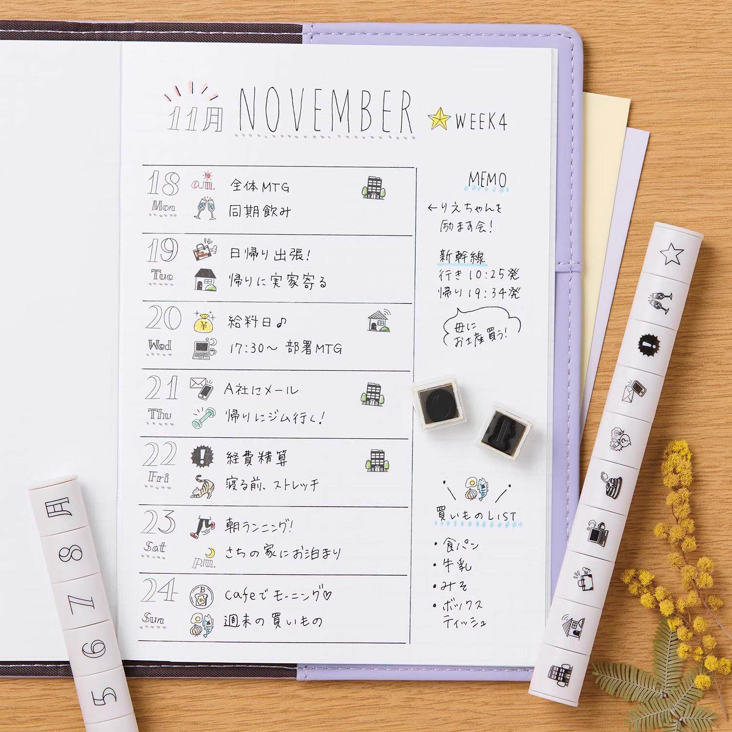 📚 shachihata旗牌十联印章浸透印手帐日程章迷你素材章无需印台打卡星期nototo10联数字章