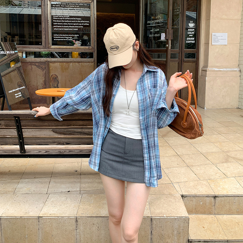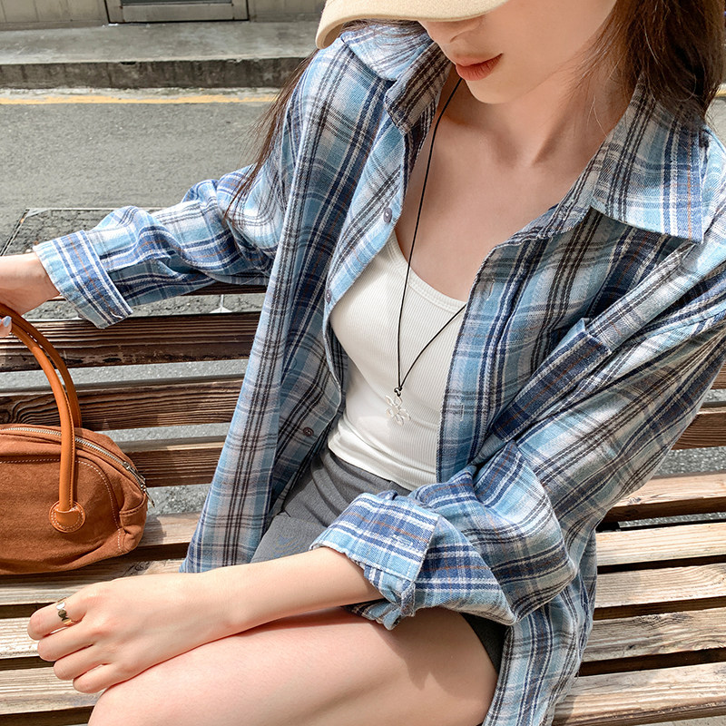 宽松衬衣防晒格子上衣
