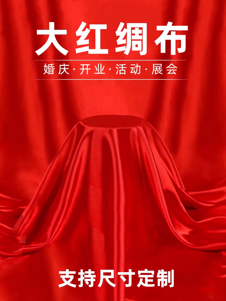 📚 红布红绸布绸缎布开业揭幕剪彩红布丝绸布大红色绸子布喜庆红布料