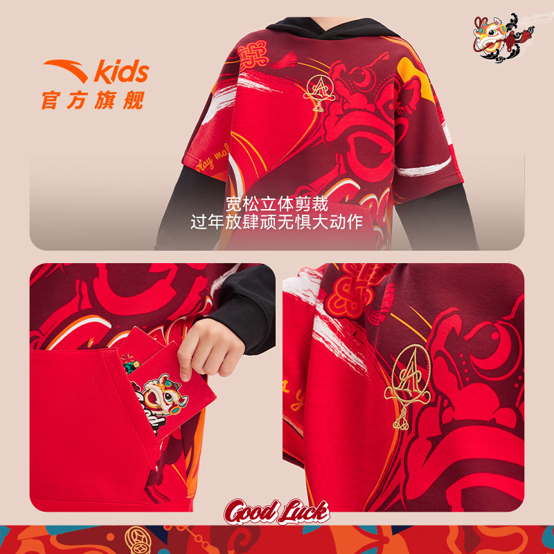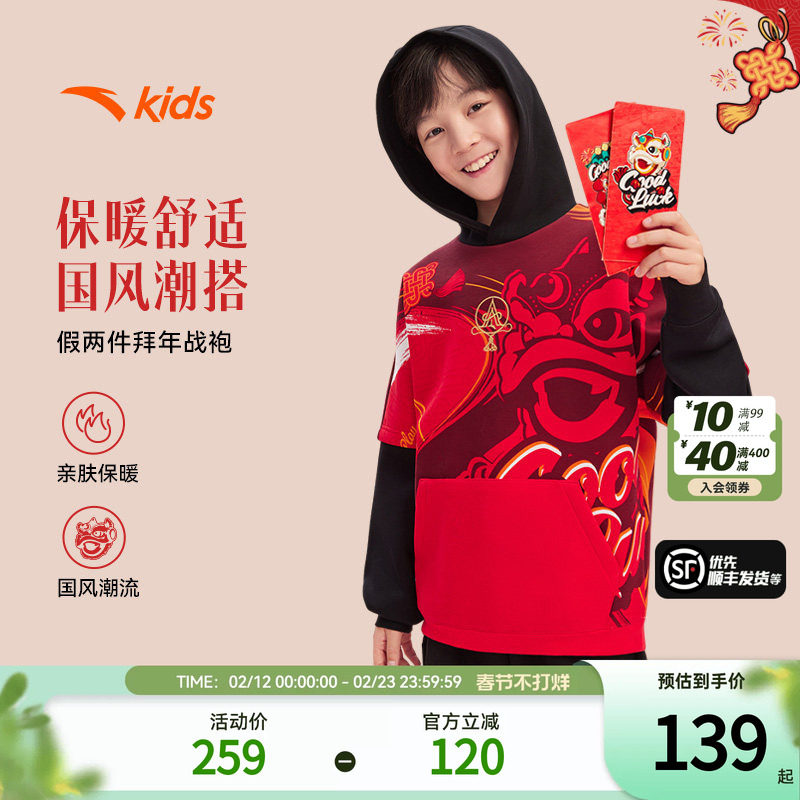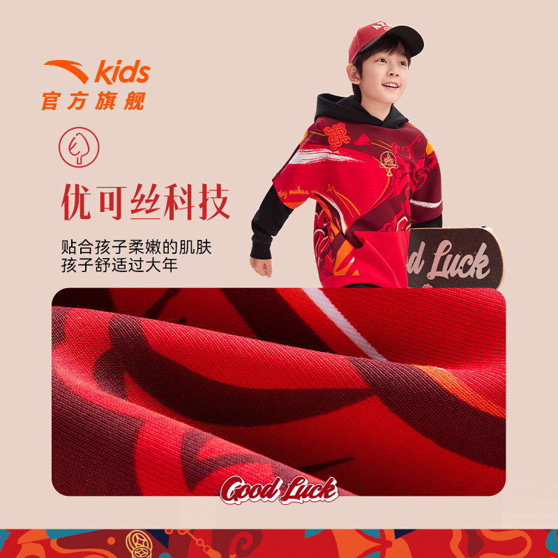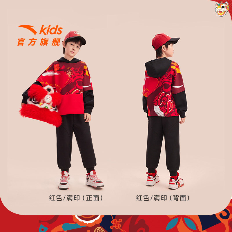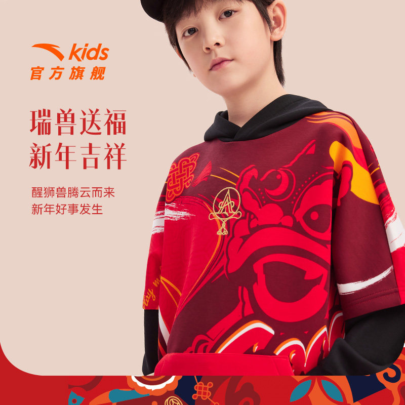 📚 安踏儿童男大童针织连帽套头衫2025年春季新款舒适柔软亲肤卫衣潮