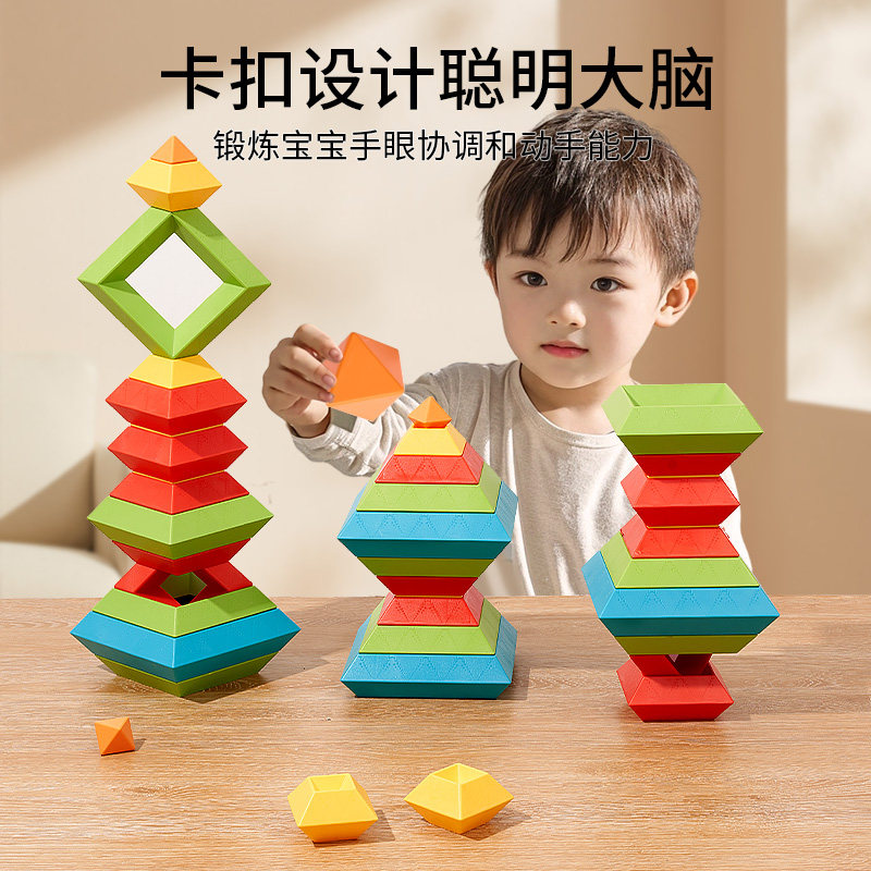 📚 百变金字塔积木儿童手工拼装玩具益智力叠叠乐鲁班塔可创意组装6