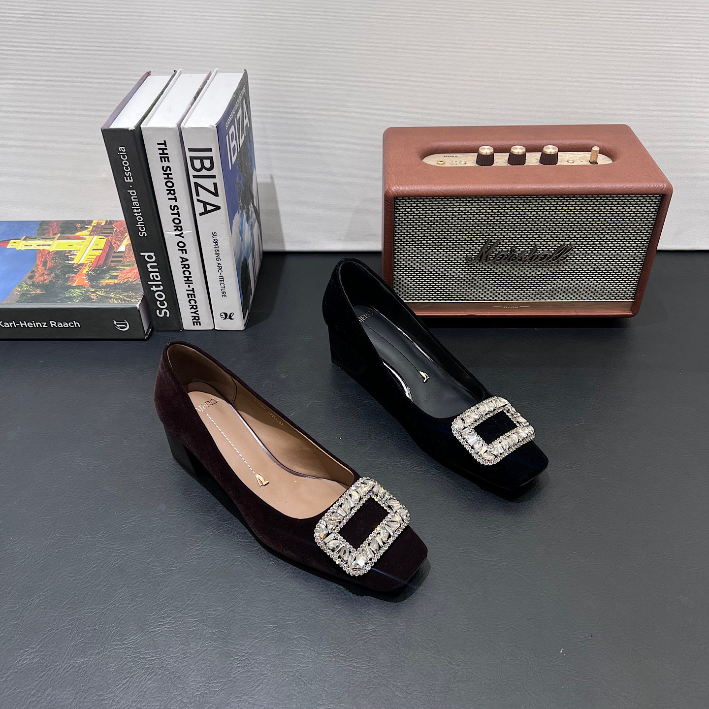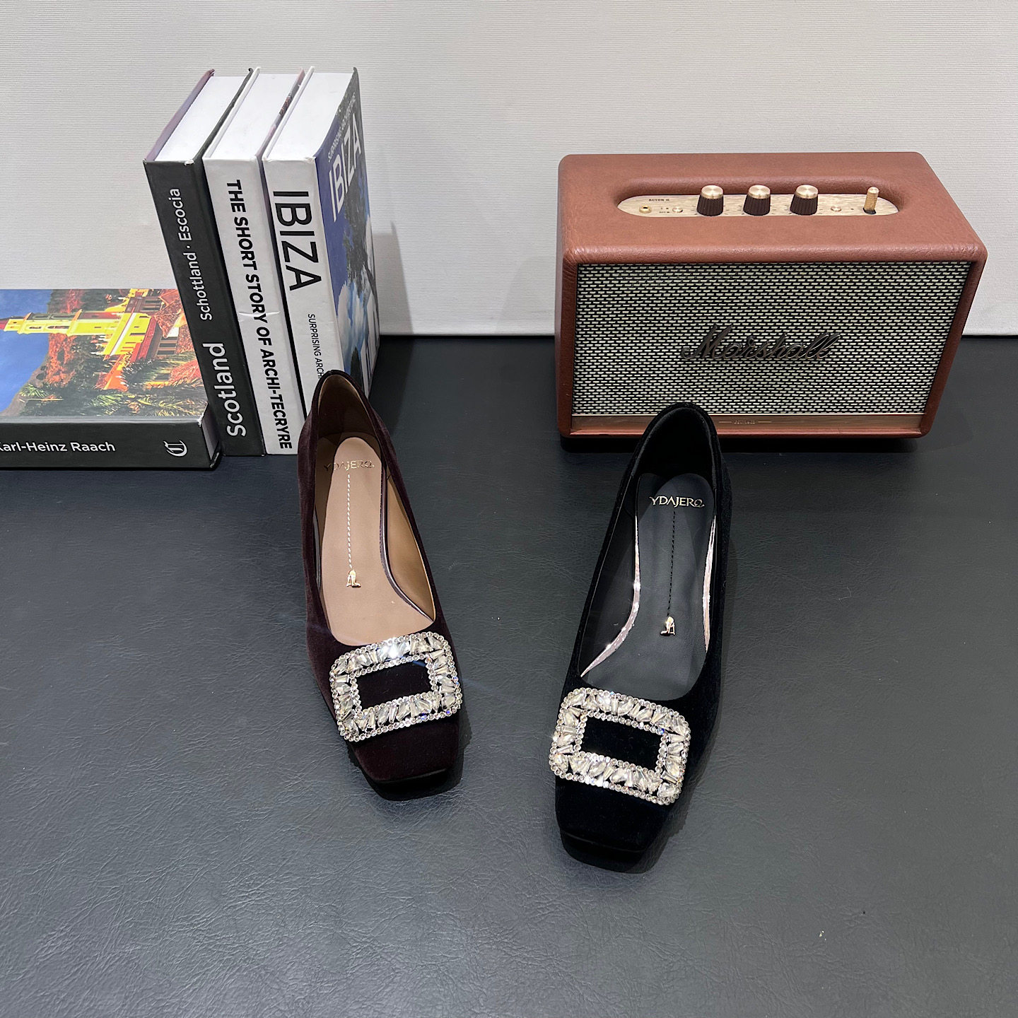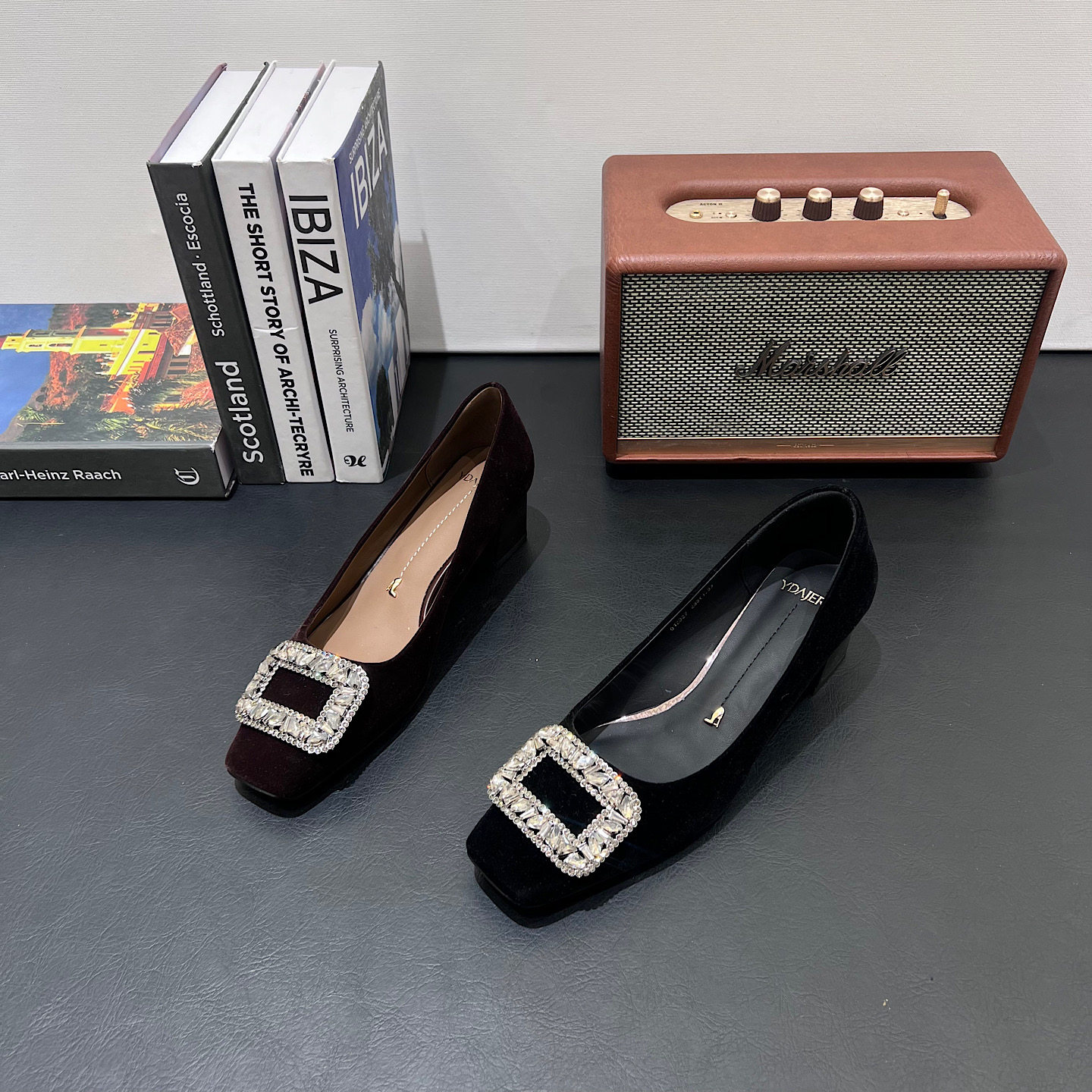 📚 一代佳人气质绒面水钻方扣法式女鞋子2026春低方跟小香风浅口单鞋