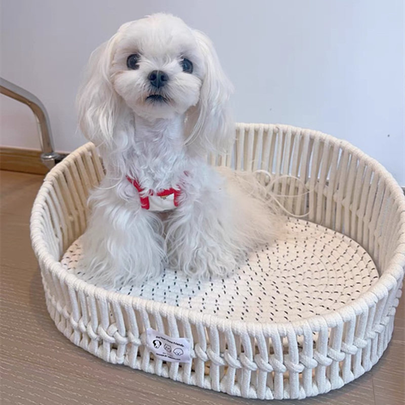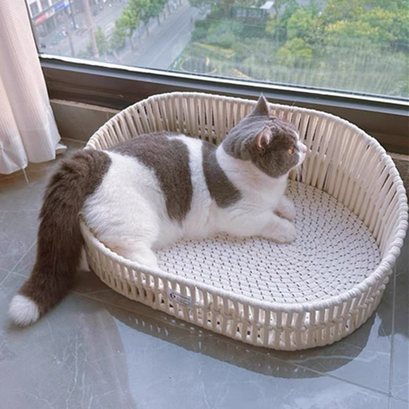 📚 猫床波西米亚手工编织猫窝麻绳可磨爪子狗窝狗垫子半封闭宠物用品