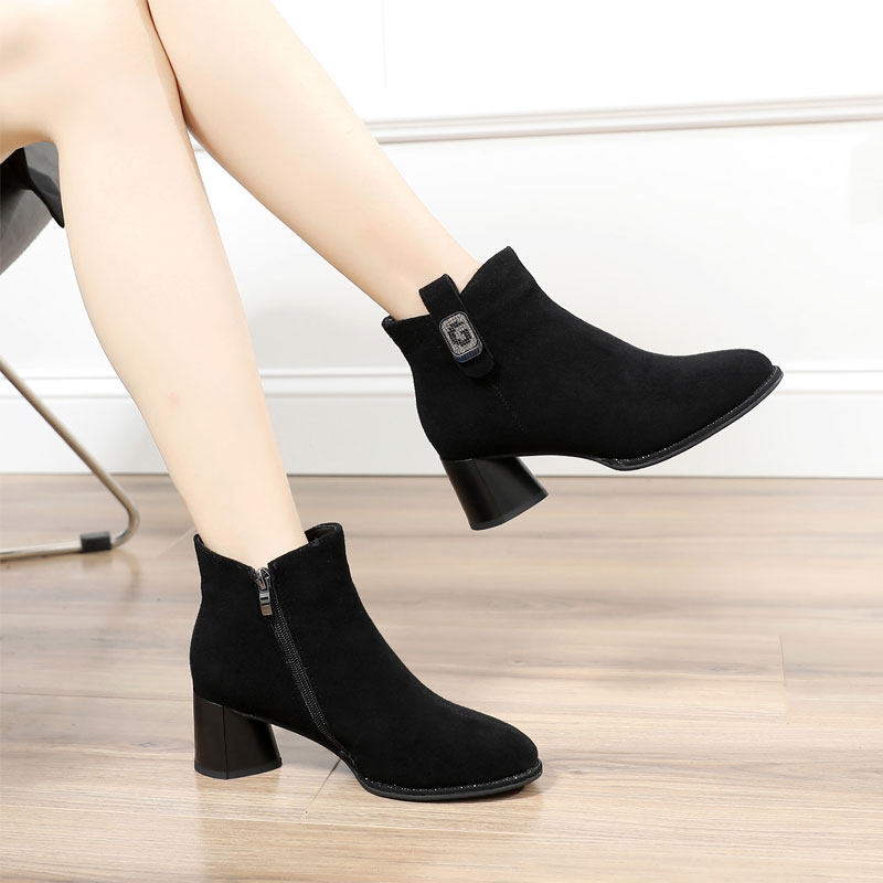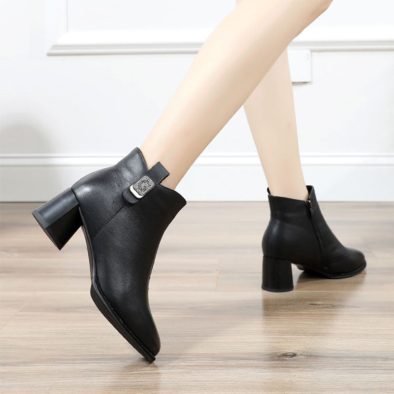 📚 真皮冬季小短靴高跟妈妈靴32 33小码小个子中跟粗跟保暖43加大码