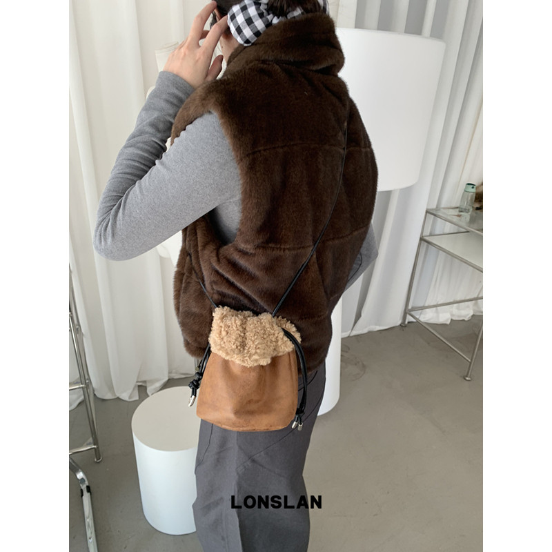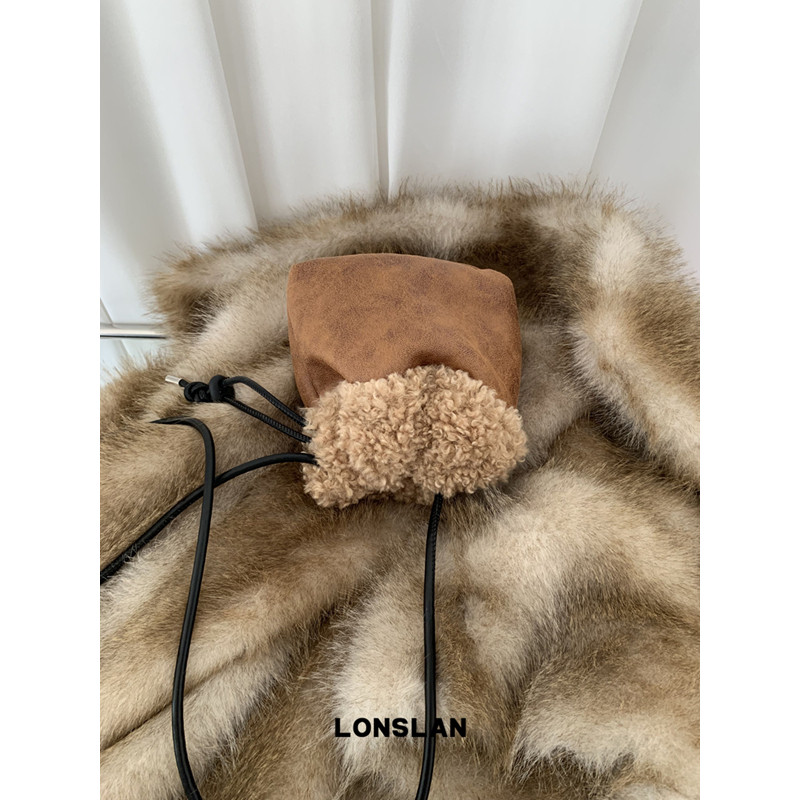 📚 Lonslan BAG 2024WINTER秋冬毛绒抽绳手机包复古斜挎可爱小包包