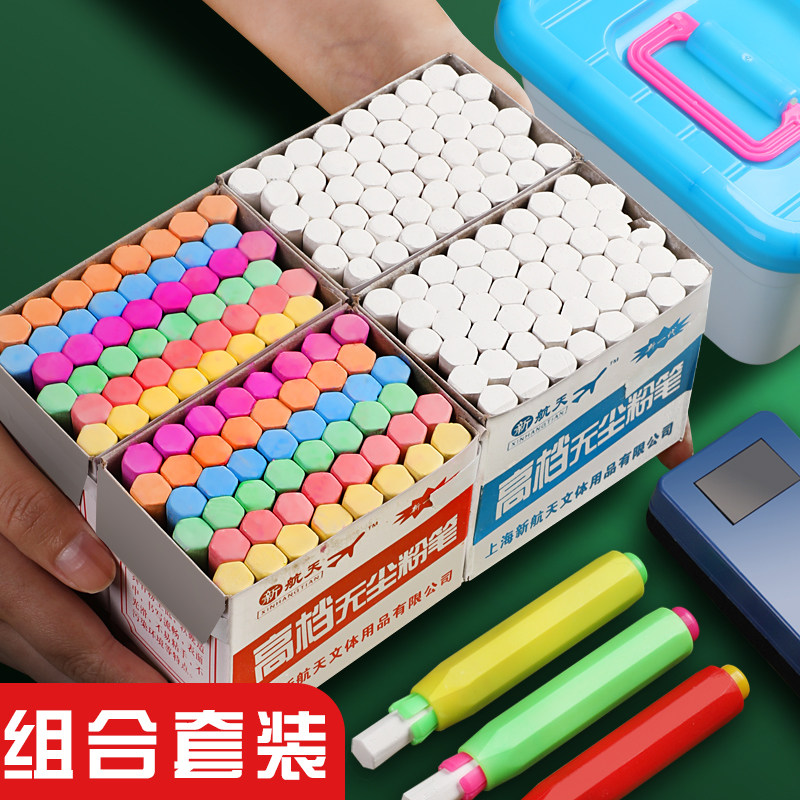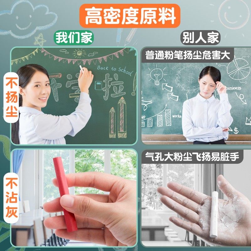 📚 彩色粉笔黑板报专用六角粉笔套环保鲜艳画画涂鸦用的盒子套装水溶性粉笔夹教师儿童安全无尘家用教学粉尘白色