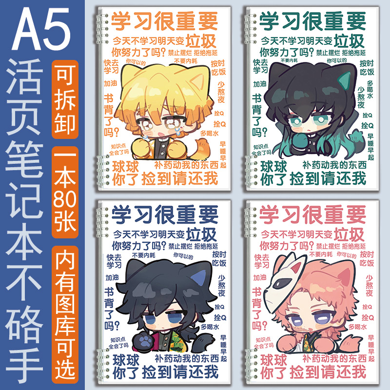 📚 蝴蝶忍笔记本子鬼灭之刃无一郎A5活页本作业本草稿本日记本伊之助