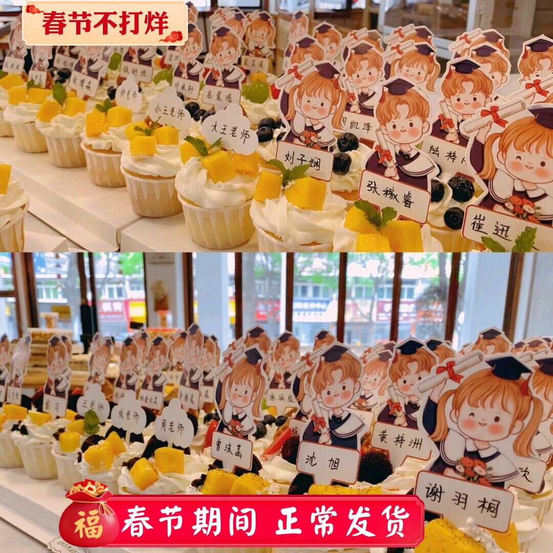 📚 毕业季蛋糕装饰可写字男孩女孩插牌中考高考金榜题名博士帽插件