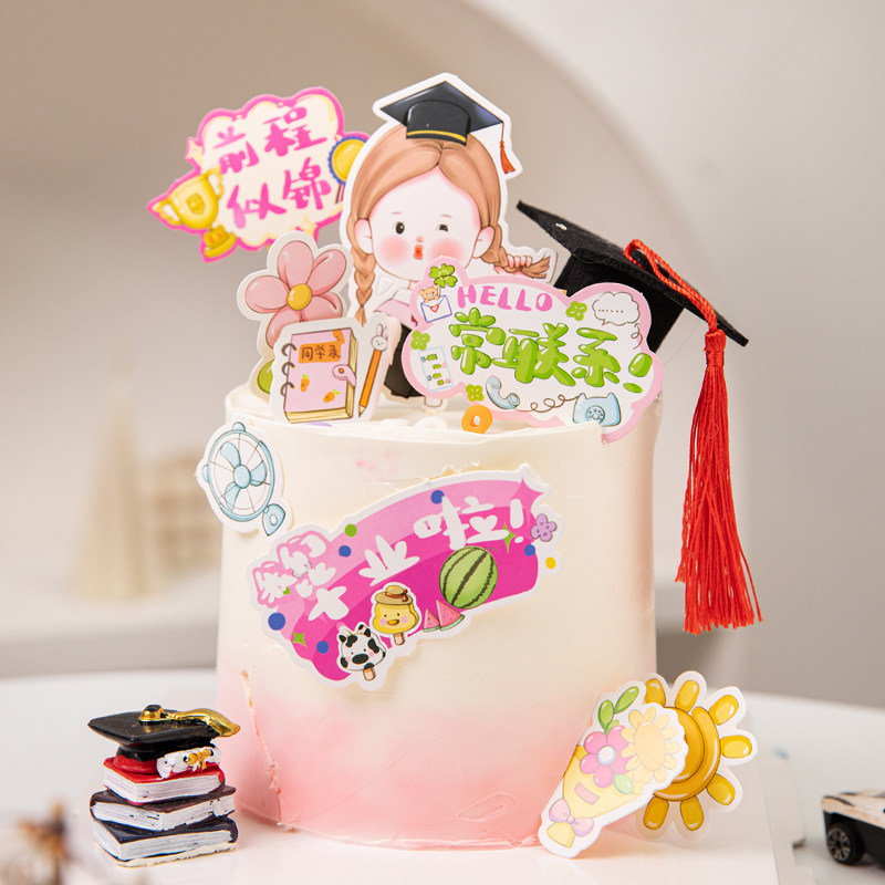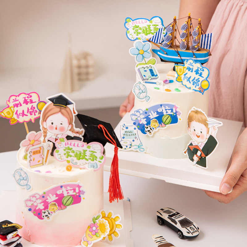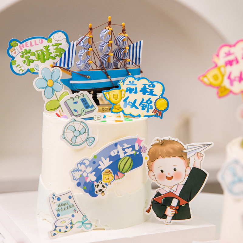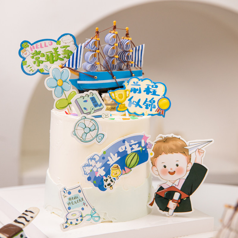📚 2025毕业季帆船蛋糕装饰摆件学士帽博士男孩女孩烘焙甜品装扮插牌