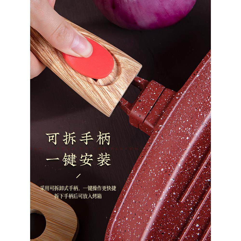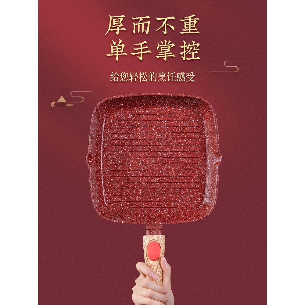 📚 MGC麦饭石专用牛排煎锅不粘锅条纹煎牛扒锅家用平底早餐锅电磁炉