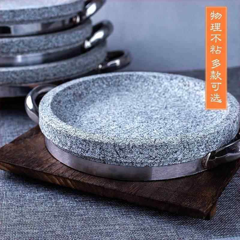📚 石头平底锅天然石锅家用石烤盘韩式盘石板天然石板盘煎牛扒锅石碗