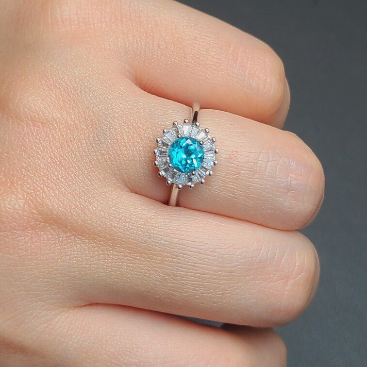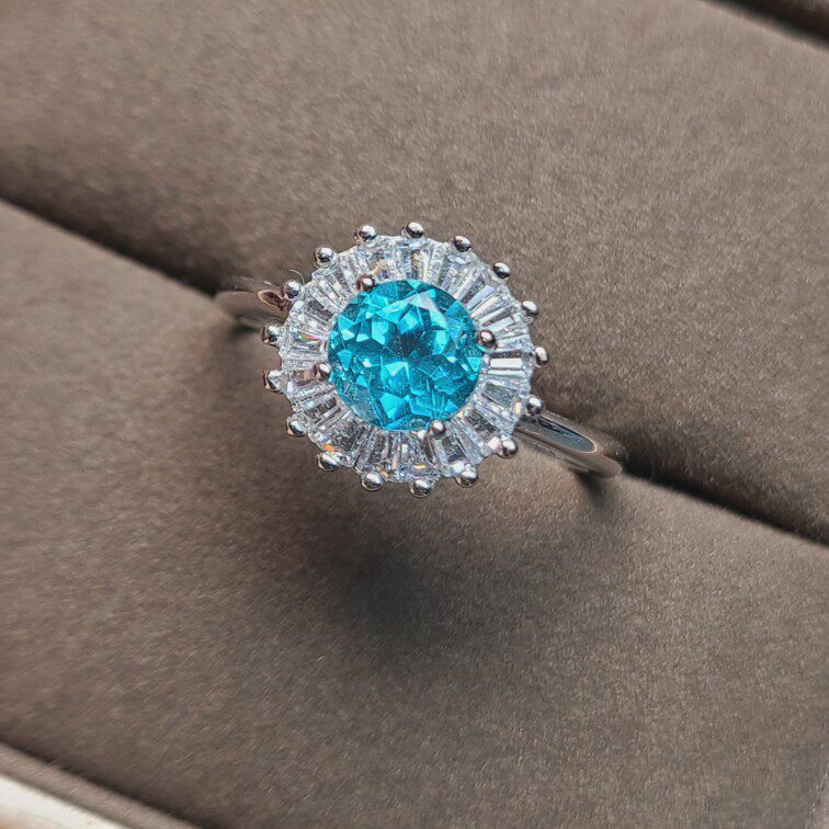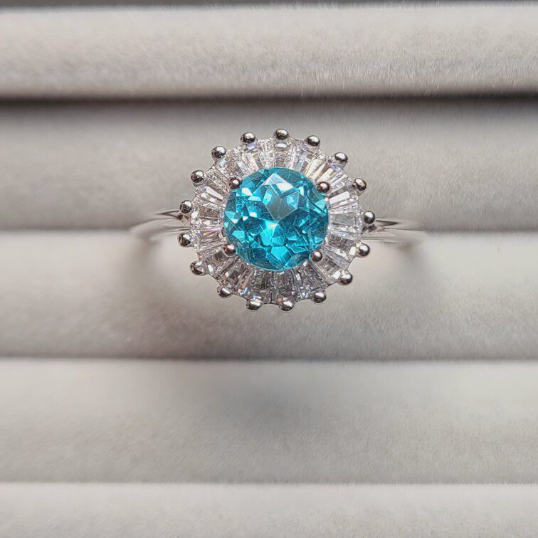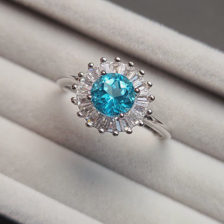 📚 天然磷灰石戒指 帕拉伊巴颜色 霓虹蓝 特别显手白 克拉钻大小