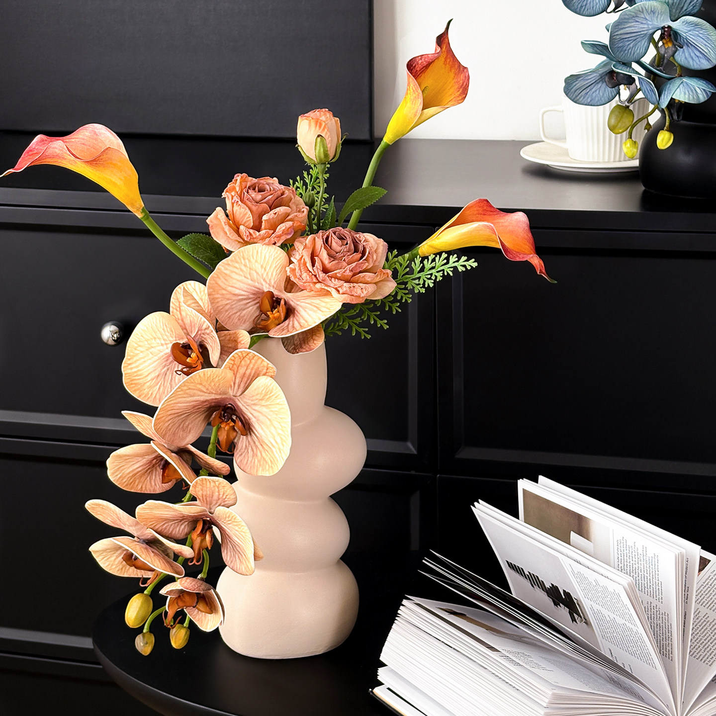 📚 蝴蝶兰仿真花花束摆设玄关轻奢高端仿生法式玫瑰意式软装新年摆件