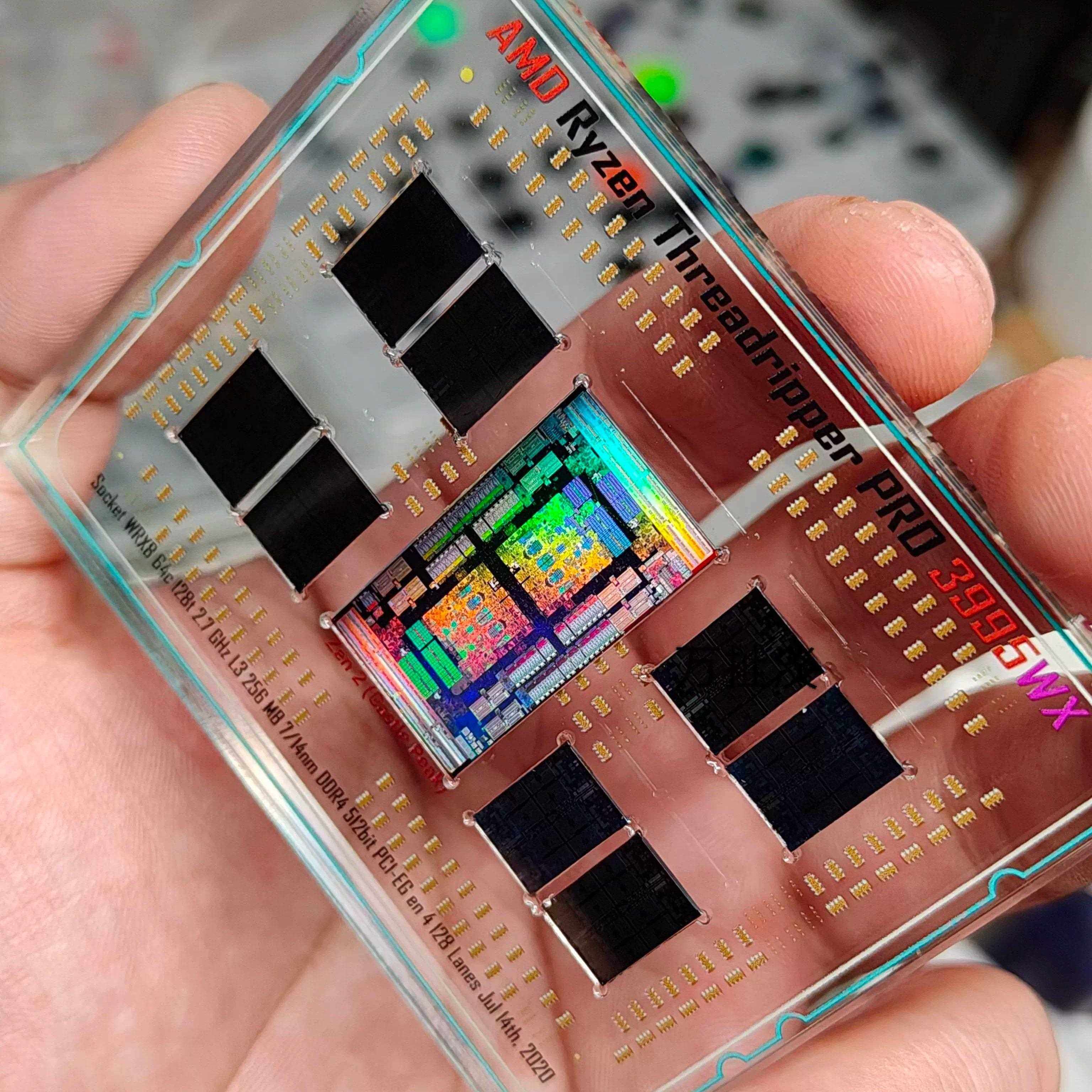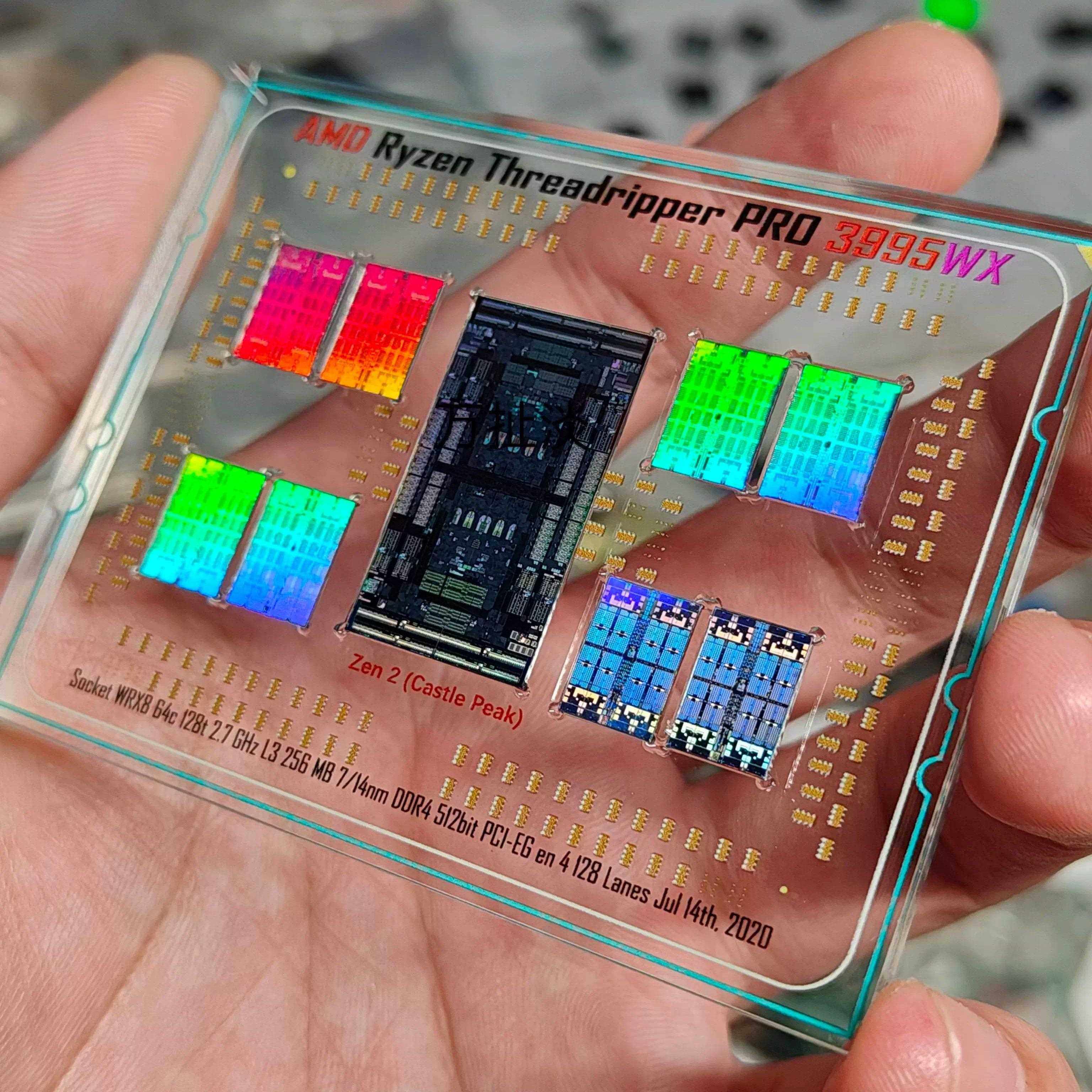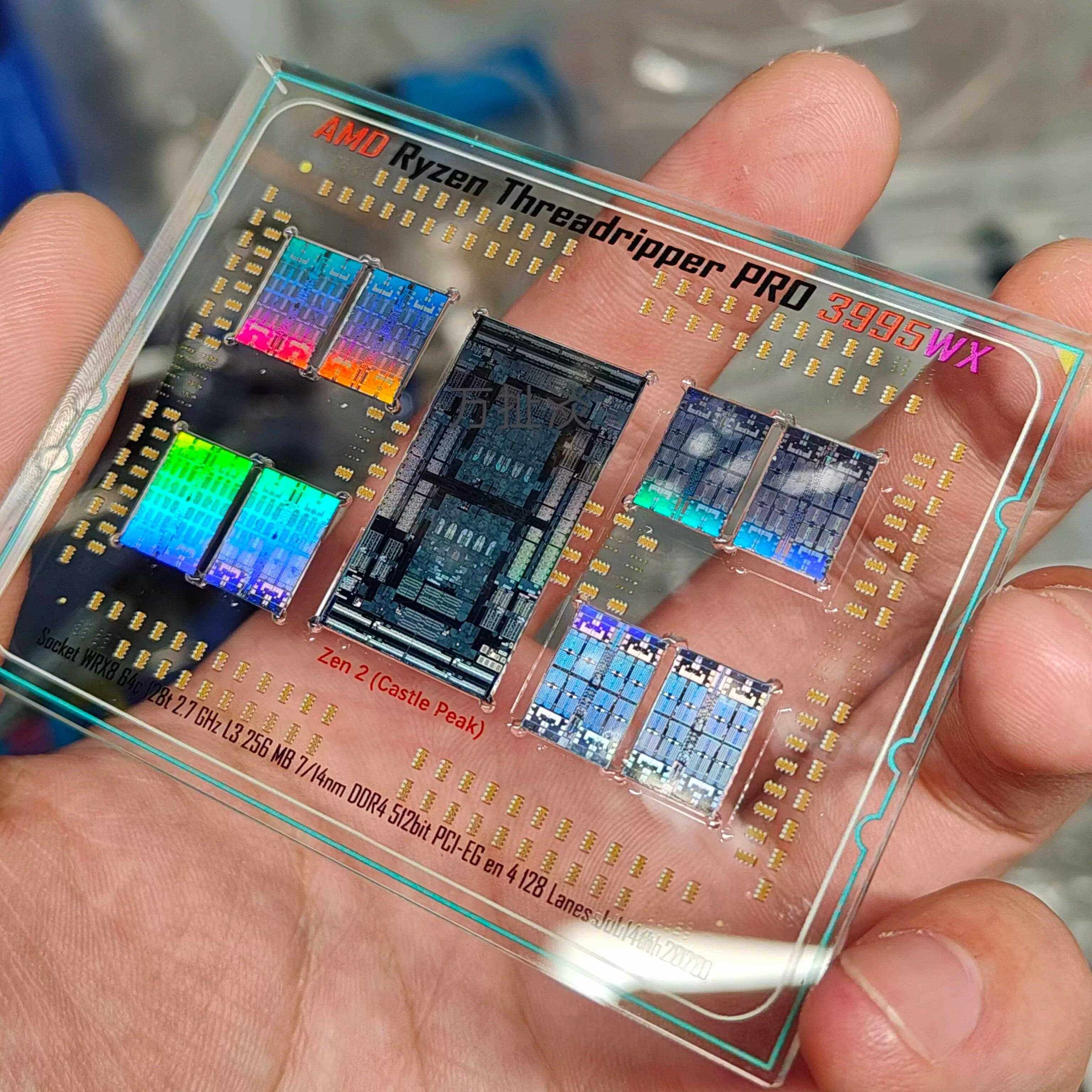 📚 AMD 线程撕裂者3995wx CPU晶圆核心摆件收藏硅片半导体电脑滴胶