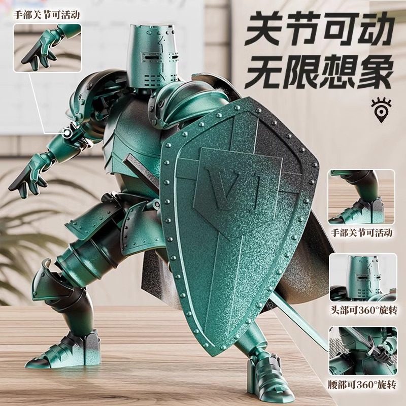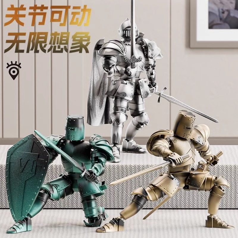 📚 中世纪骑士人偶多关节可动机甲手办高颜值幸运13拼装积木模型玩具