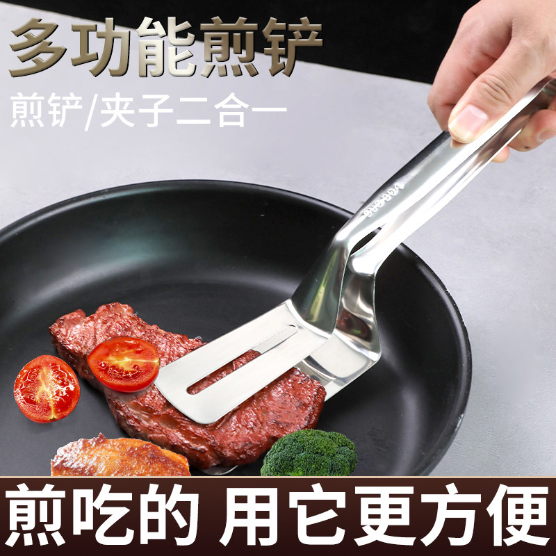 🔥🔥超赞厨房神器!304不锈钢煎铲二合一煎鱼铲牛排烧烤夹子🍽️