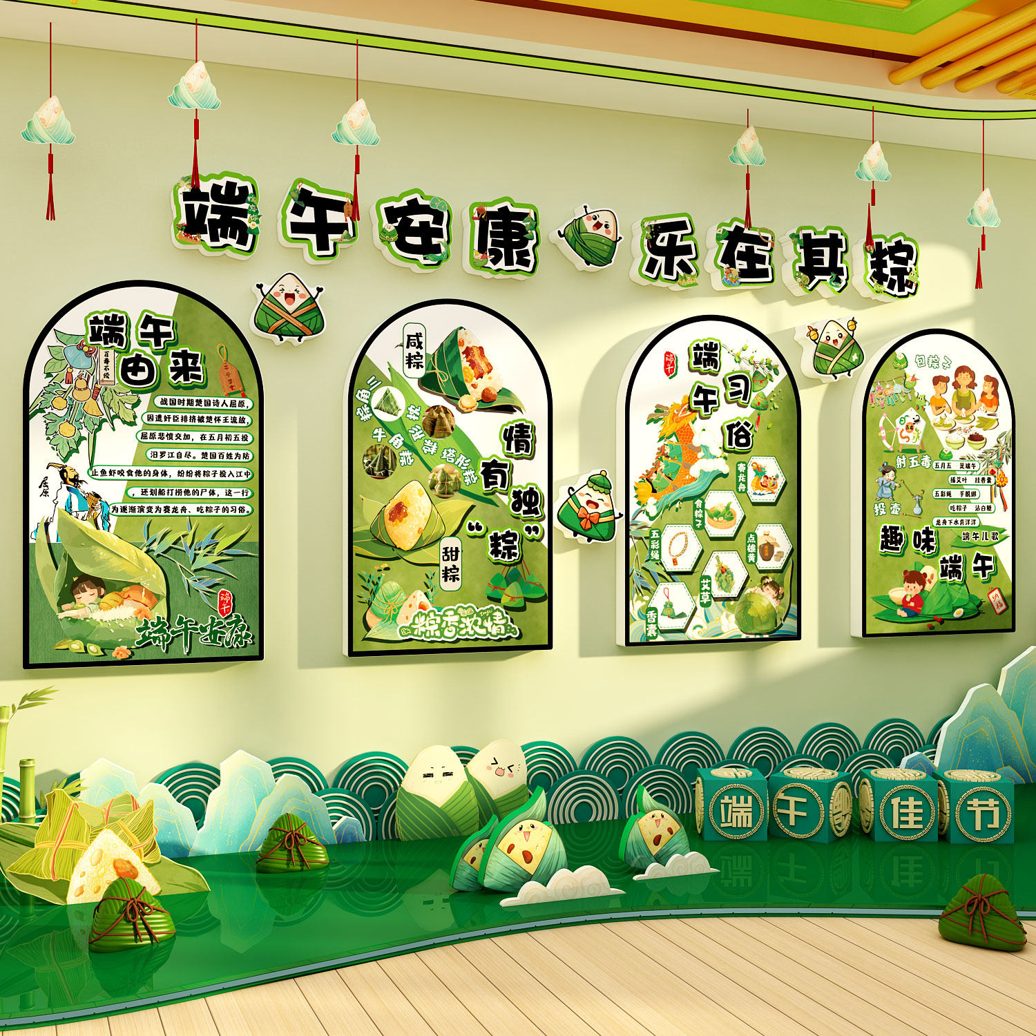 📚 幼儿园墙面装饰环创主题成品端午节日传统文化场景布置黑板报贴画