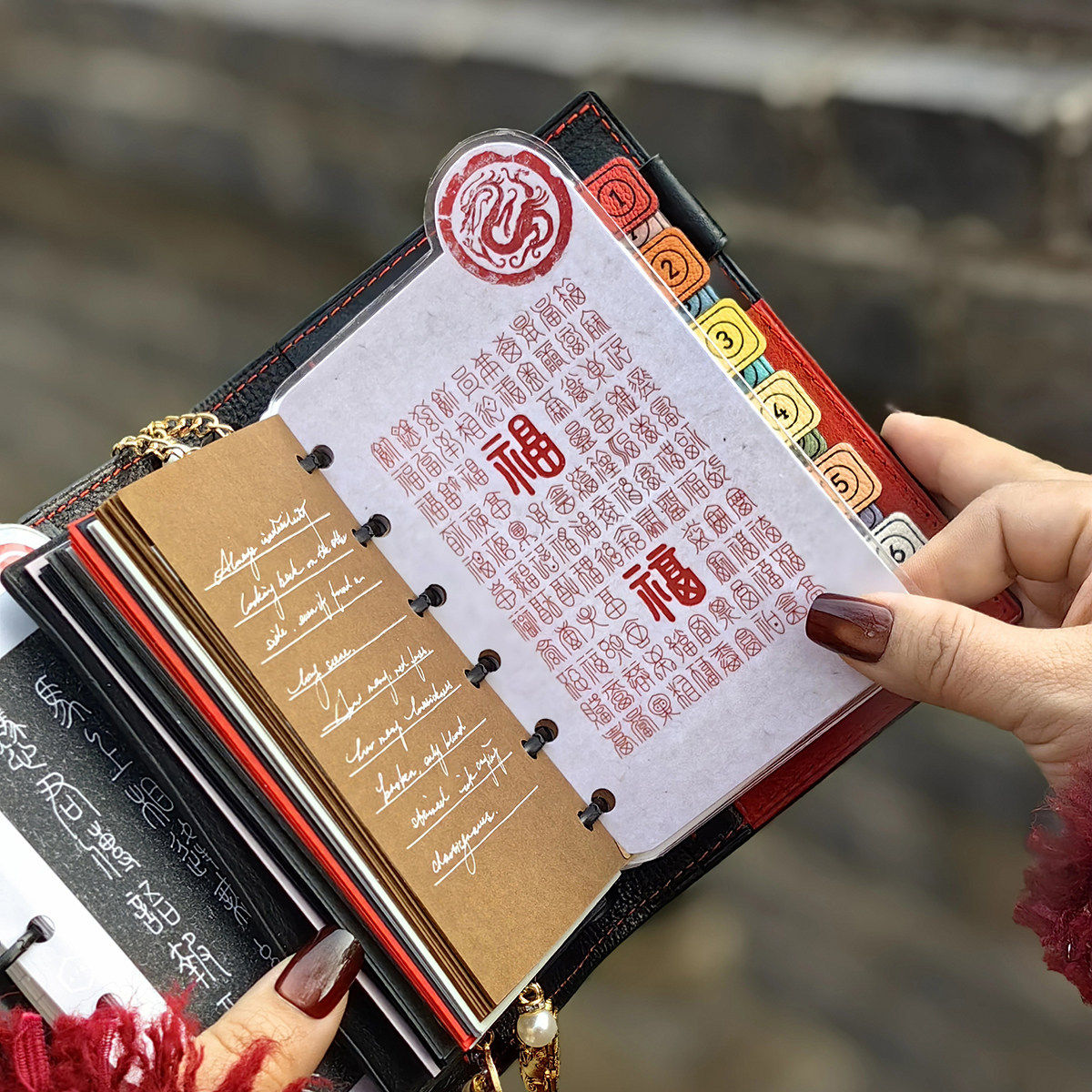 📚 QY 中国风百福图 A5A6A7奇葩M5方方子A5slim手工塑封分隔页索引