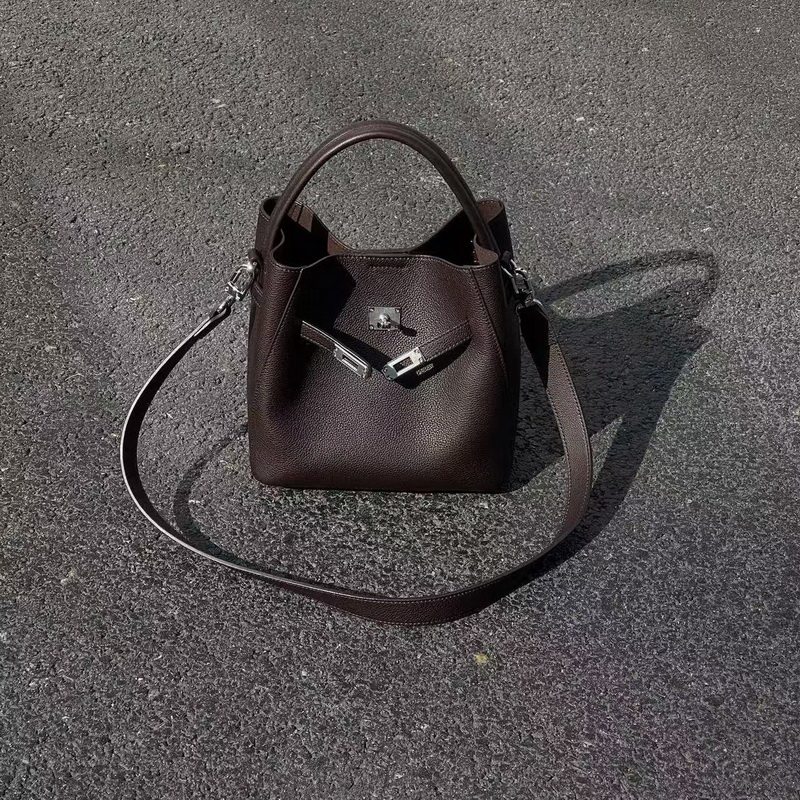 📚 欧尚典头层牛皮菜篮子包包女手提包斜挎包秋冬新款真皮软皮水桶包