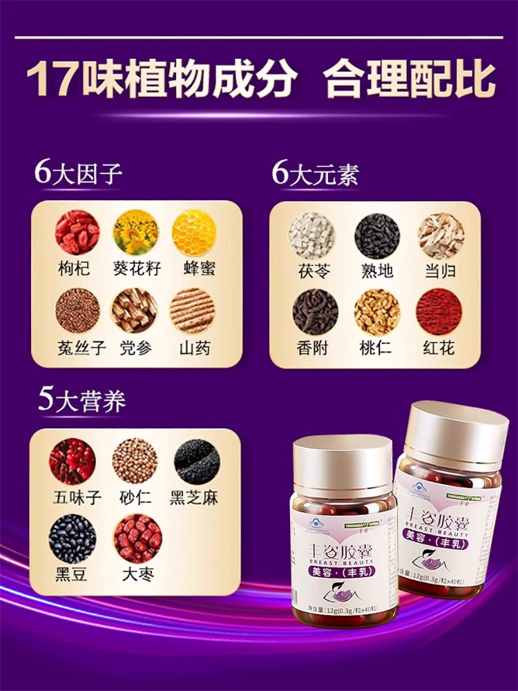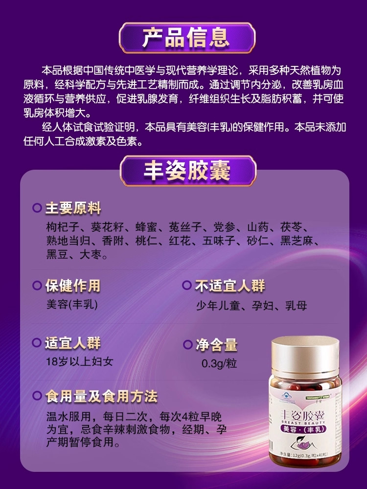 📚 千泉丰姿胶囊旗舰店正品美容丰乳搭木瓜葛根粉植物提取保健1dq