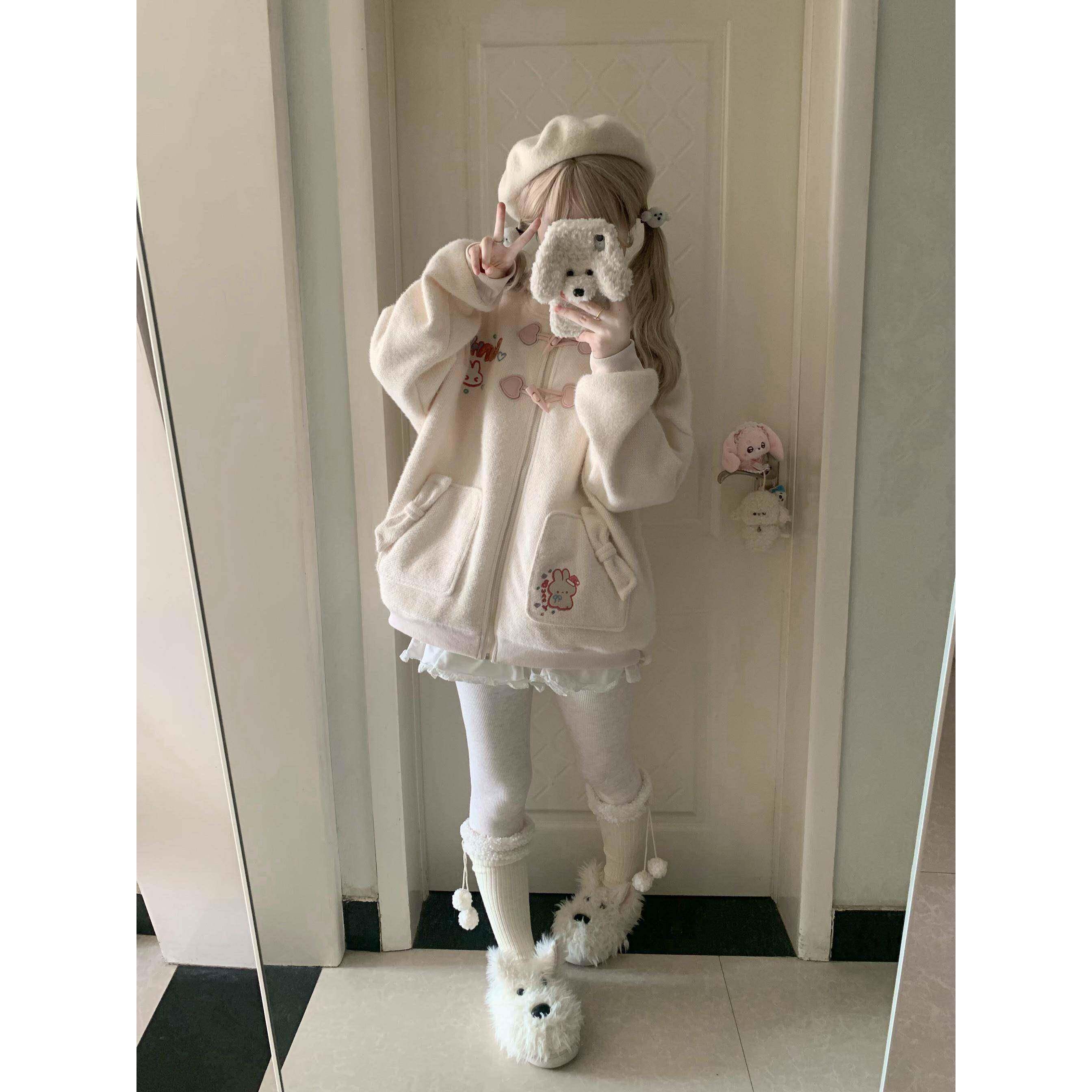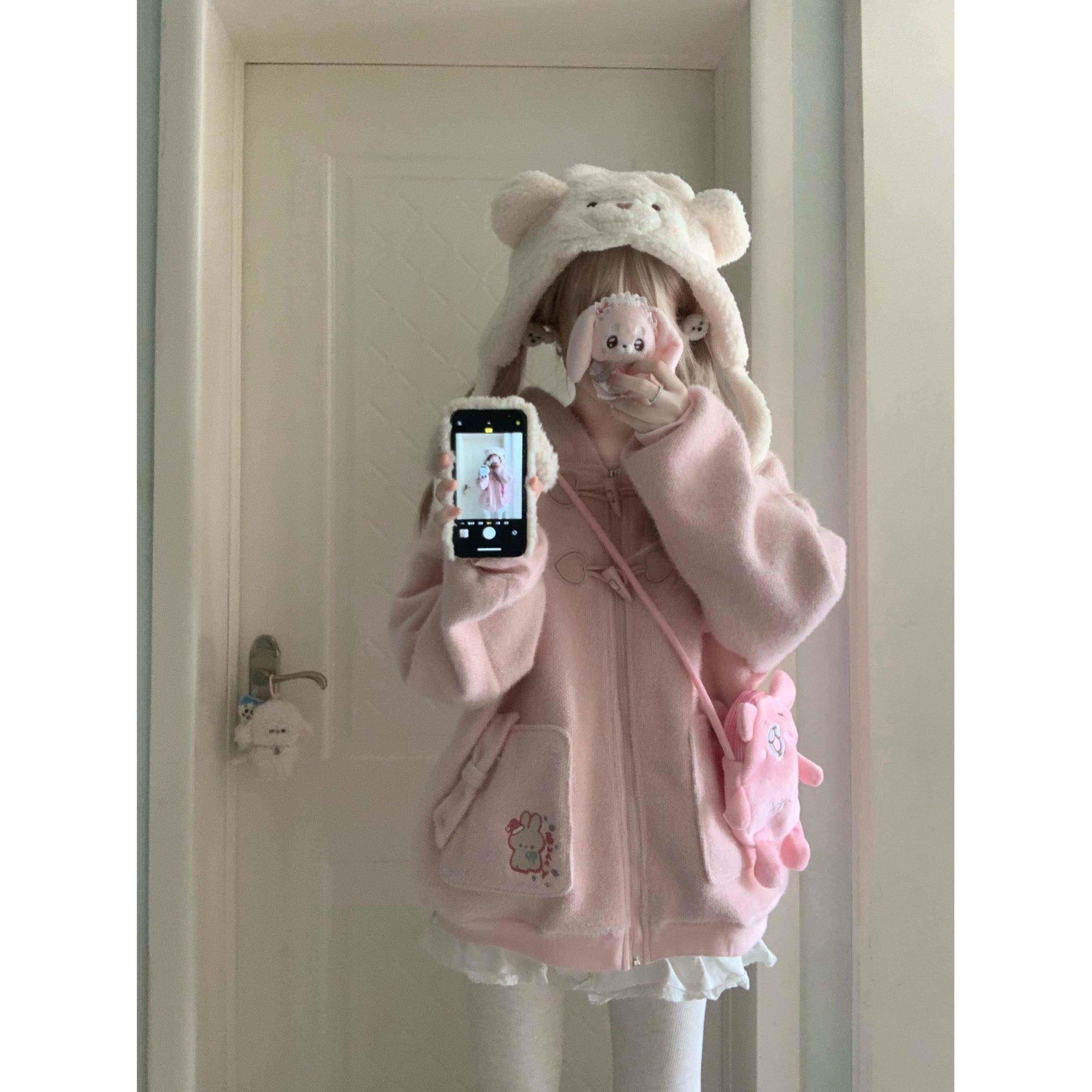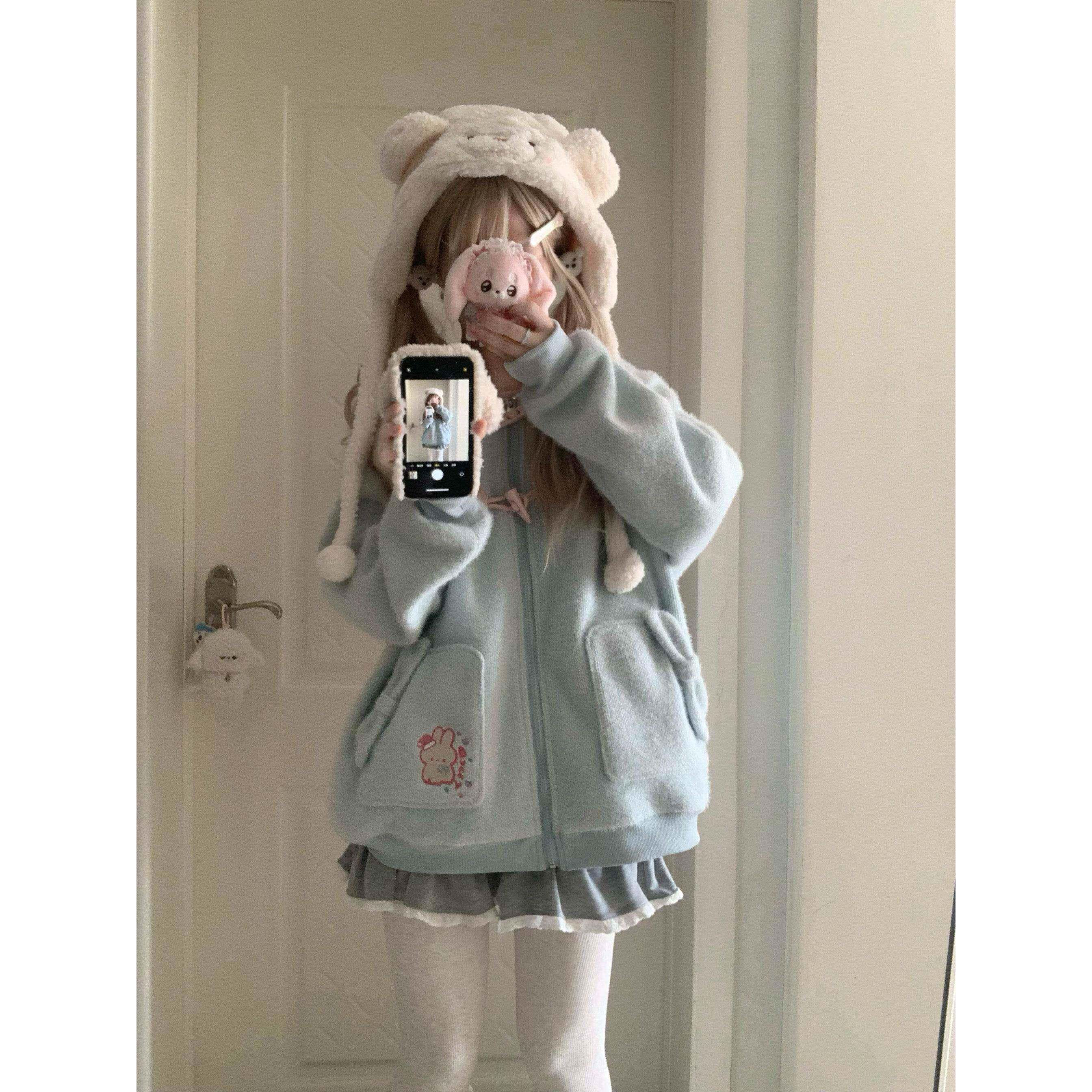 📚 丝老RXT新冬加绒秋厚软姑HEF书秋娘三色耳兔长袖连帽夹克