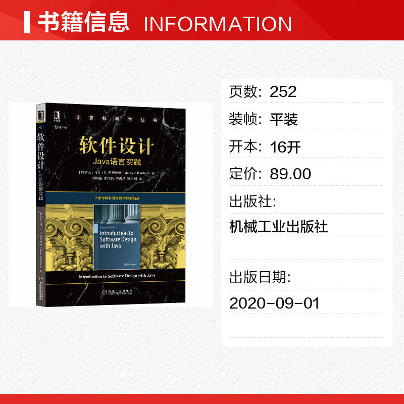 📚 软件设计 Java语言实践 (加)马丁·P.罗毕拉德 著 乔海燕 等 译 程序设计(新)专业科技 新华书店正版图书籍 机械工业出版社