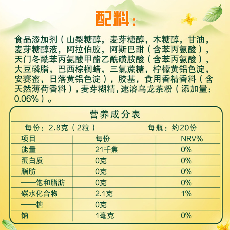 📚 【全新上市】绿箭桂花乌龙薄荷味口香糖56g*1瓶休闲小零食清新糖