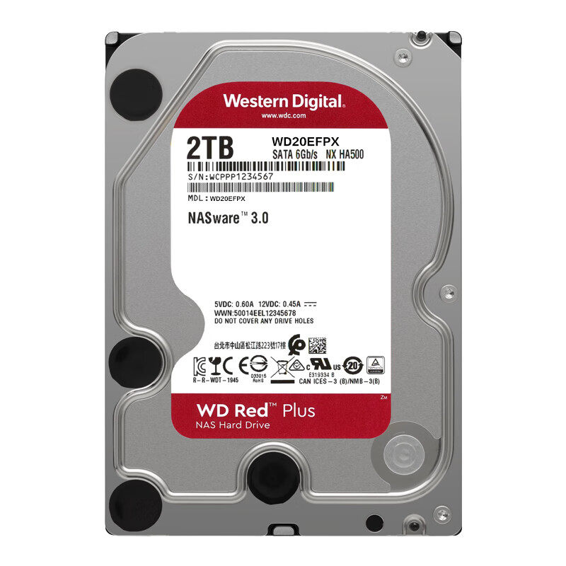 📚 正品WD西部数据Red红盘Plus WD20EFPX 2TB NAS硬盘垂直式5400转