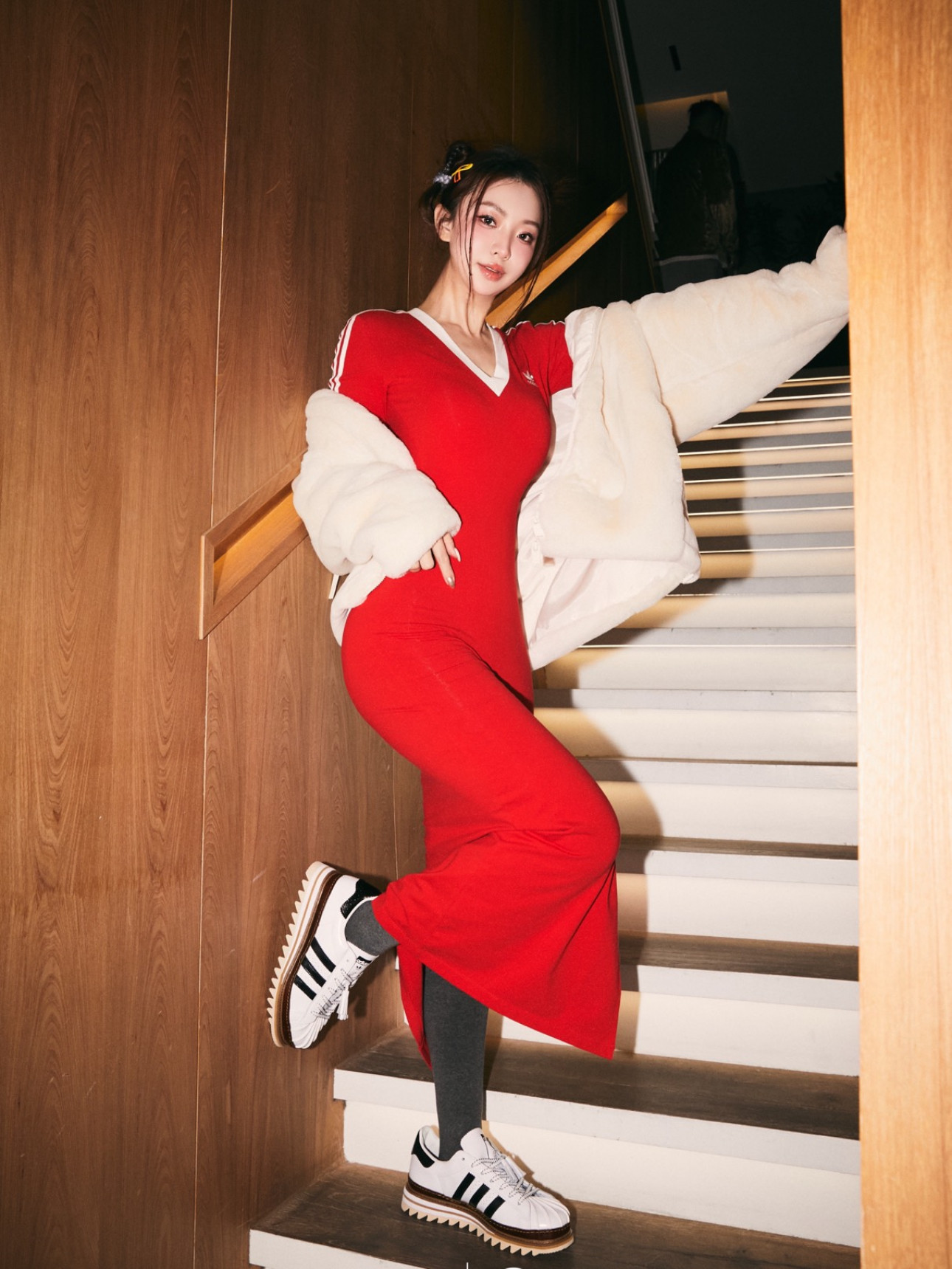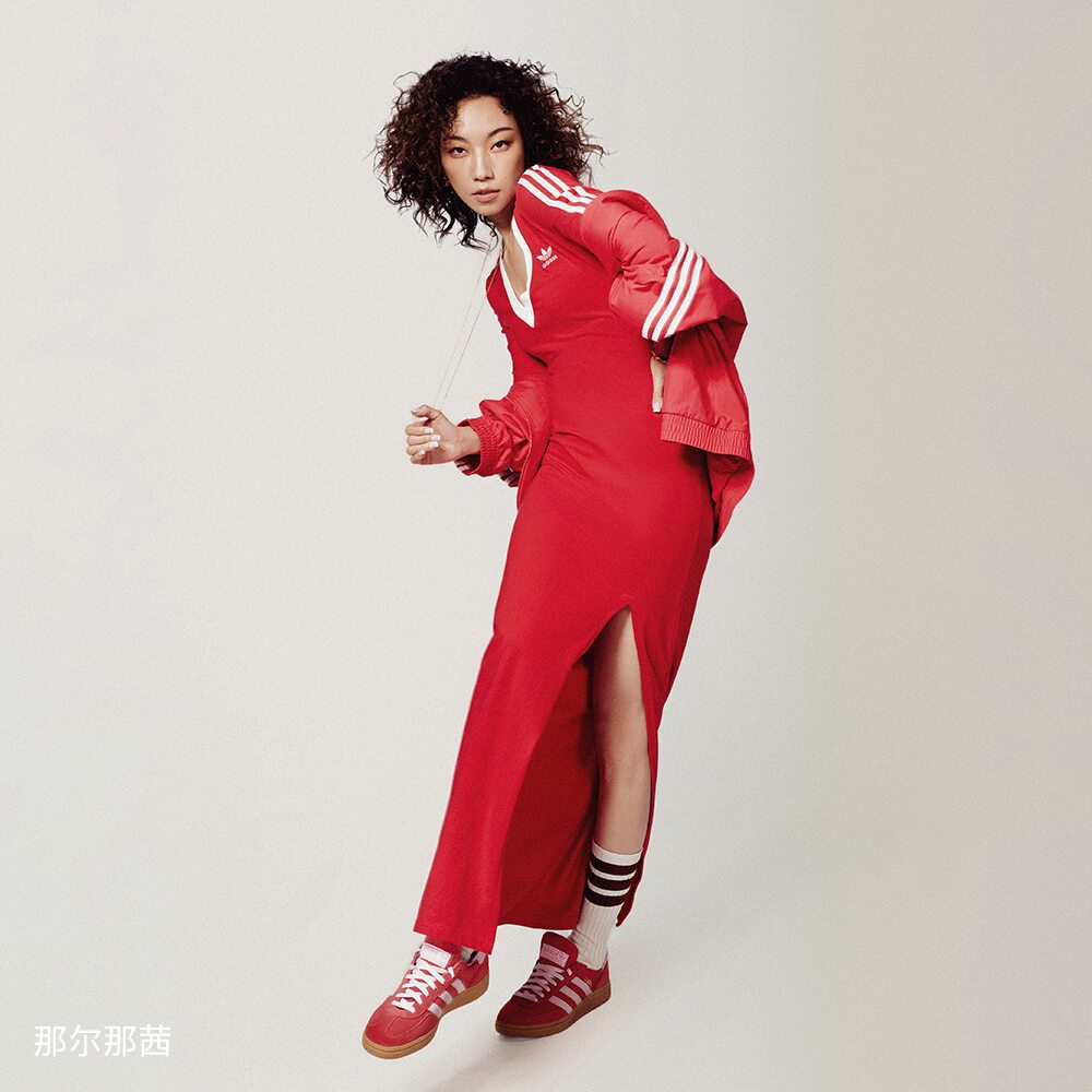 📚 ADIDAS三叶草女子复古三条纹侧开叉V领中袖连衣长裙IK0439/II0750
