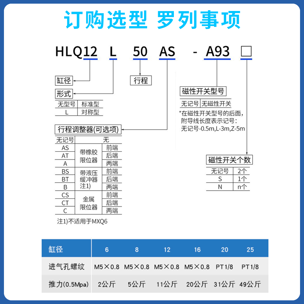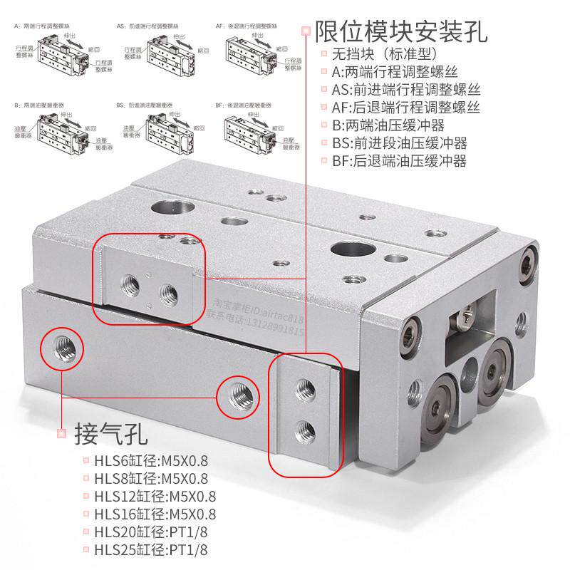 📚 亚徳客HLQL滑台气缸HLQ6/8/12/16/20/25X10X30X40X50X75X100X125S