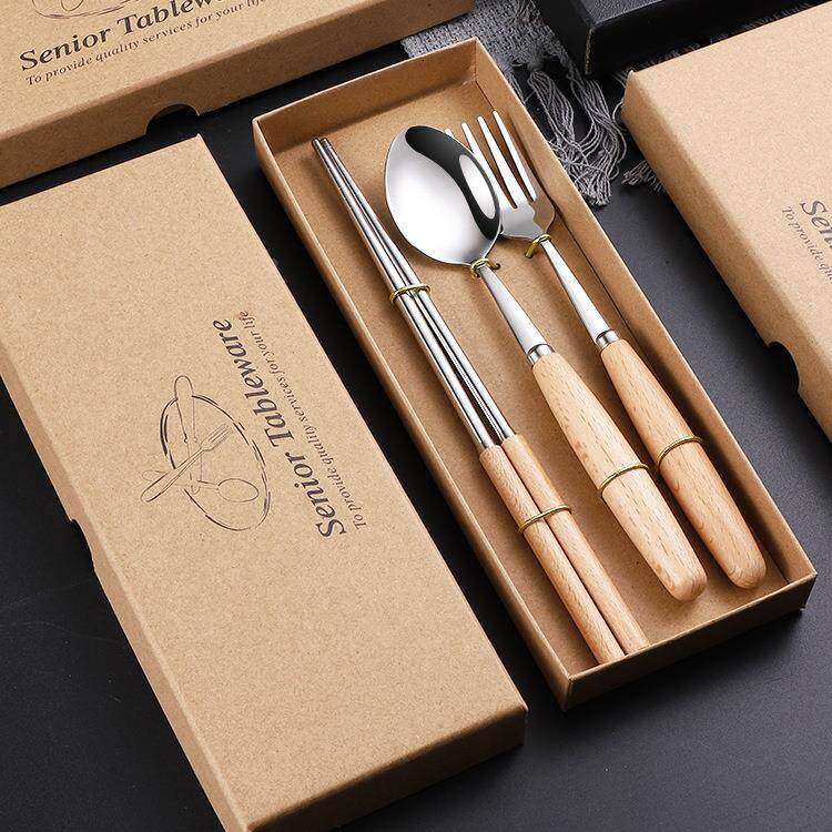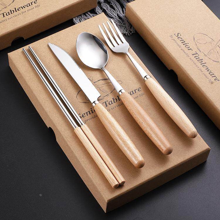 📚 源头不锈钢刀叉勺餐具套装日式木柄牛排刀叉甜品勺筷子礼盒装定制