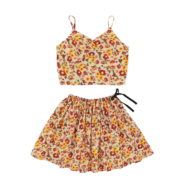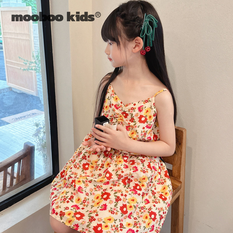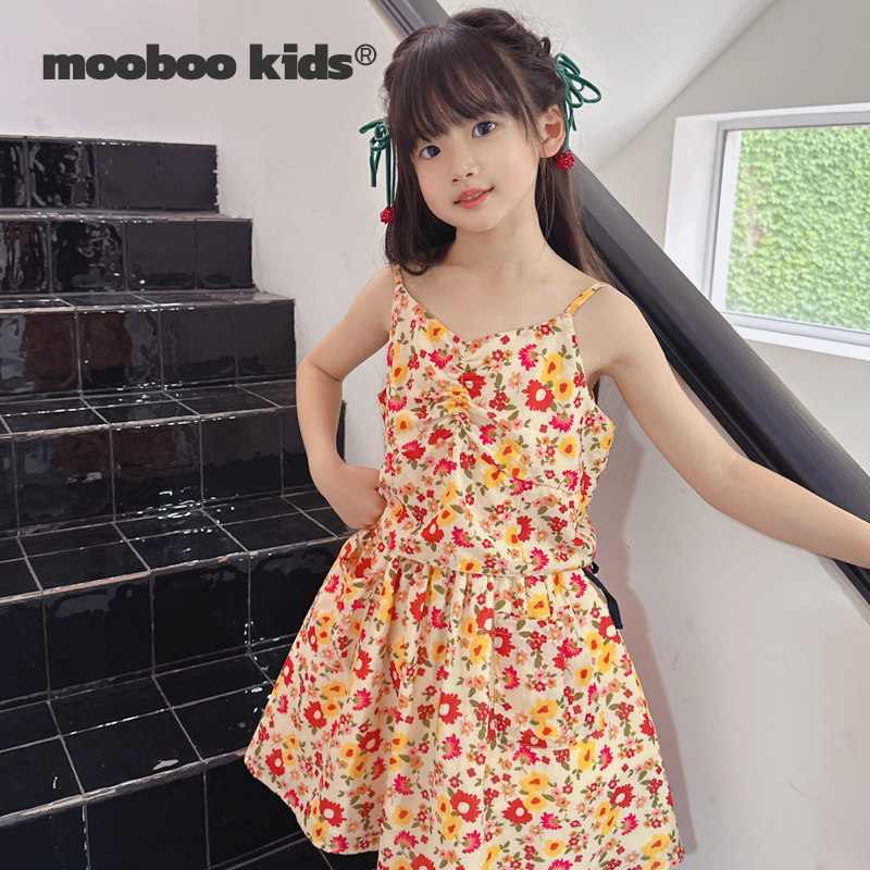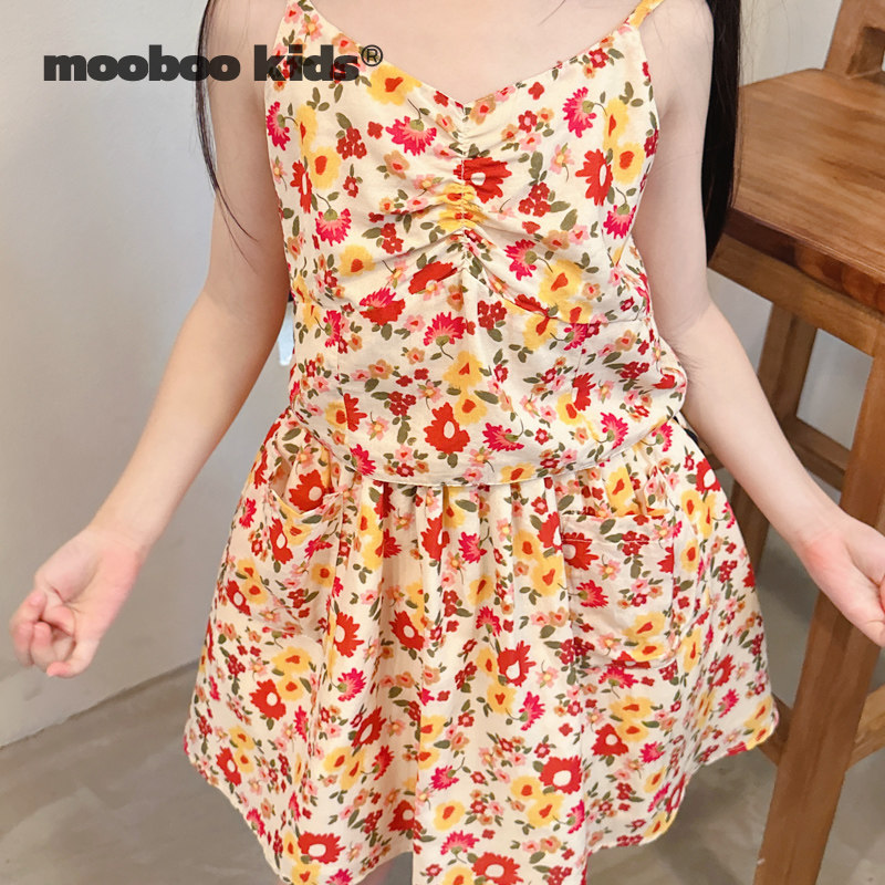 📚 墨宝童装 MoobooKids_法式显白橙红色碎花轻薄透气吊带半裙套装