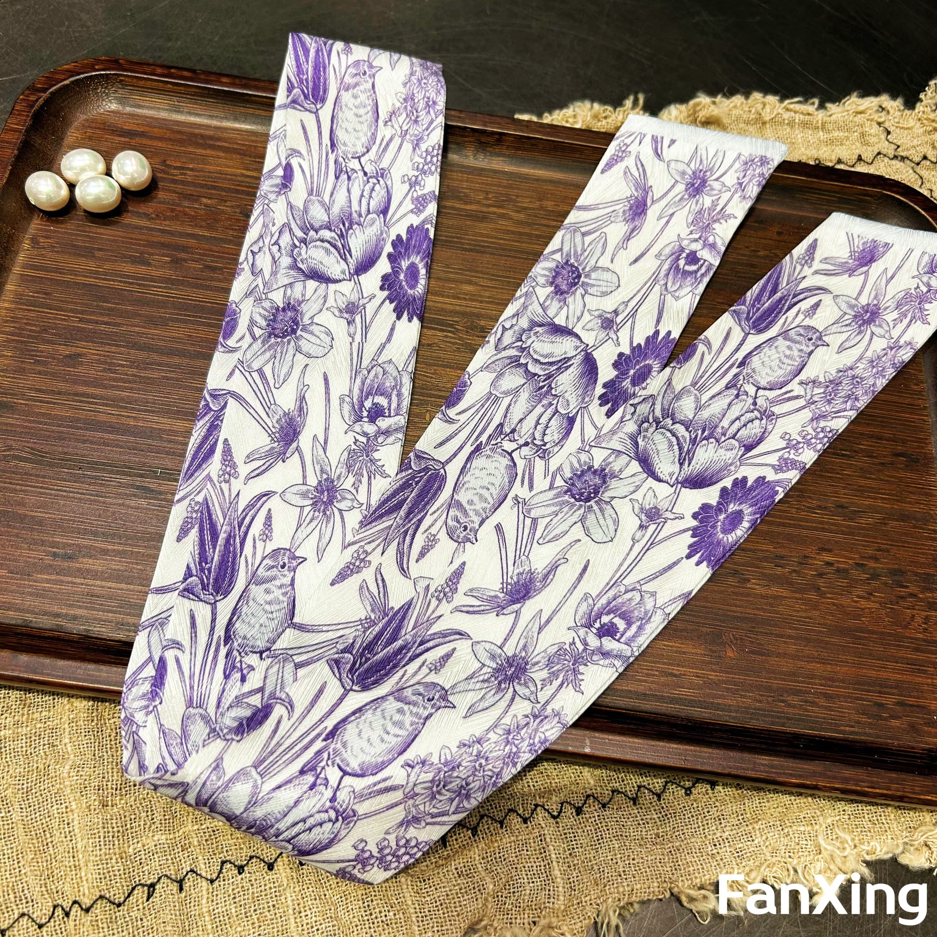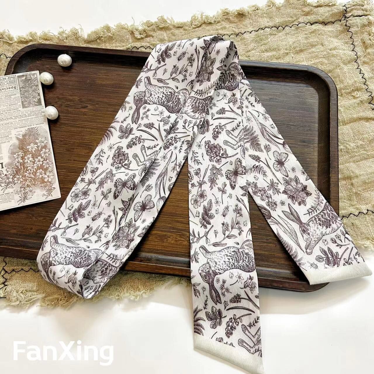 📚 繁星原创新款黑白花卉印花丝巾韩国高级感小长条绑包扎发丝带发带