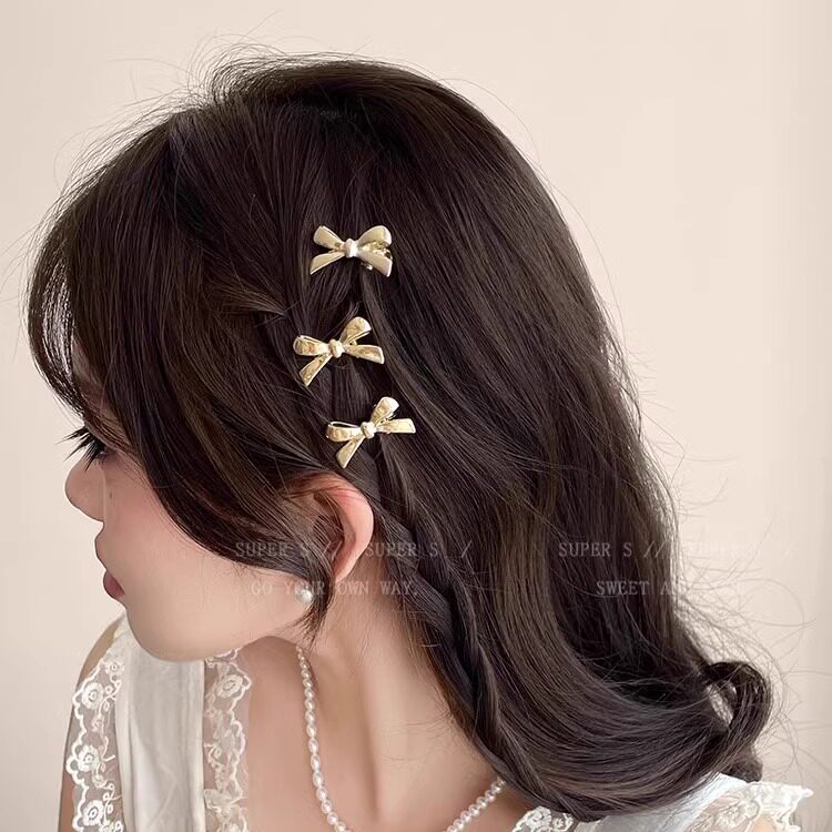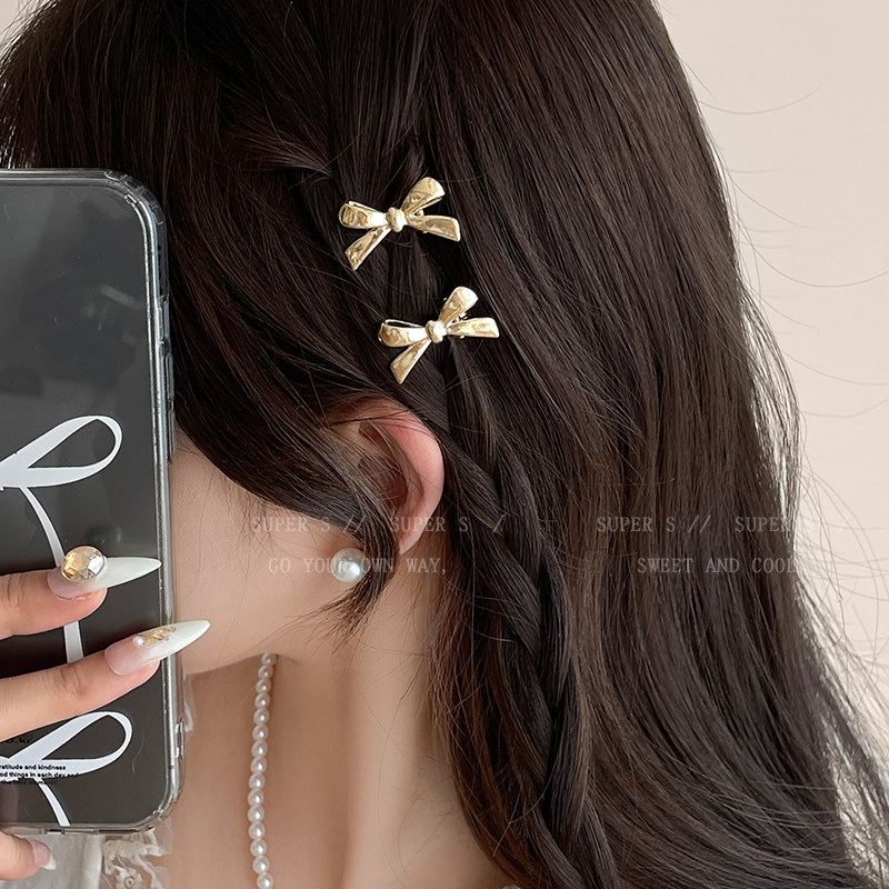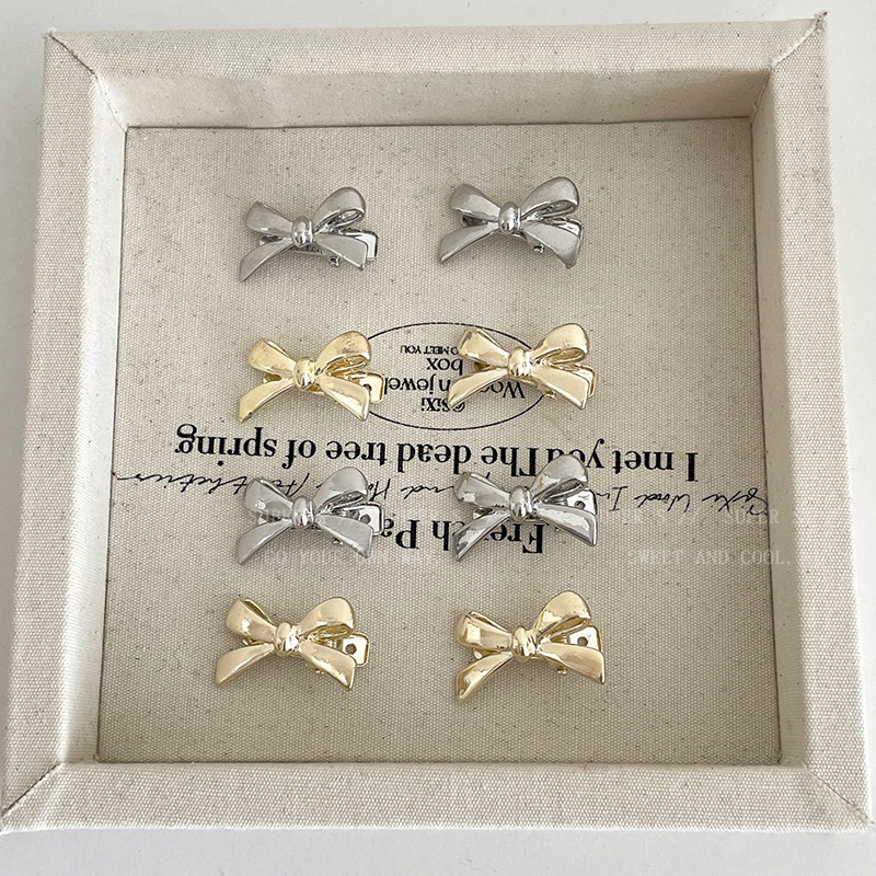 📚 韩系蝴蝶结小号金属发夹女y2k银色侧边刘海一字夹子百搭发饰头饰