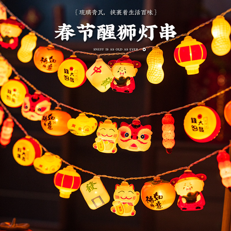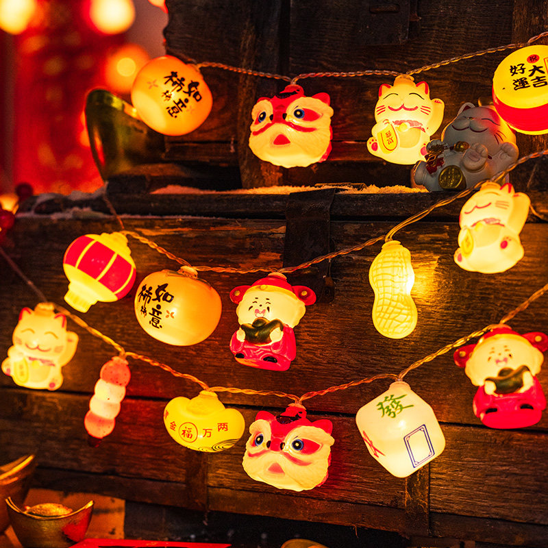 📚 马年2026新款新年福字小红灯笼灯串春节阳台新年喜庆发光氛围灯带