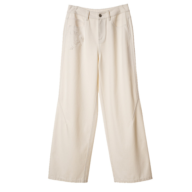 📚 Distin Kidny/迪凯老钱风纯棉高腰阔腿女极简显瘦直筒休闲牛仔裤