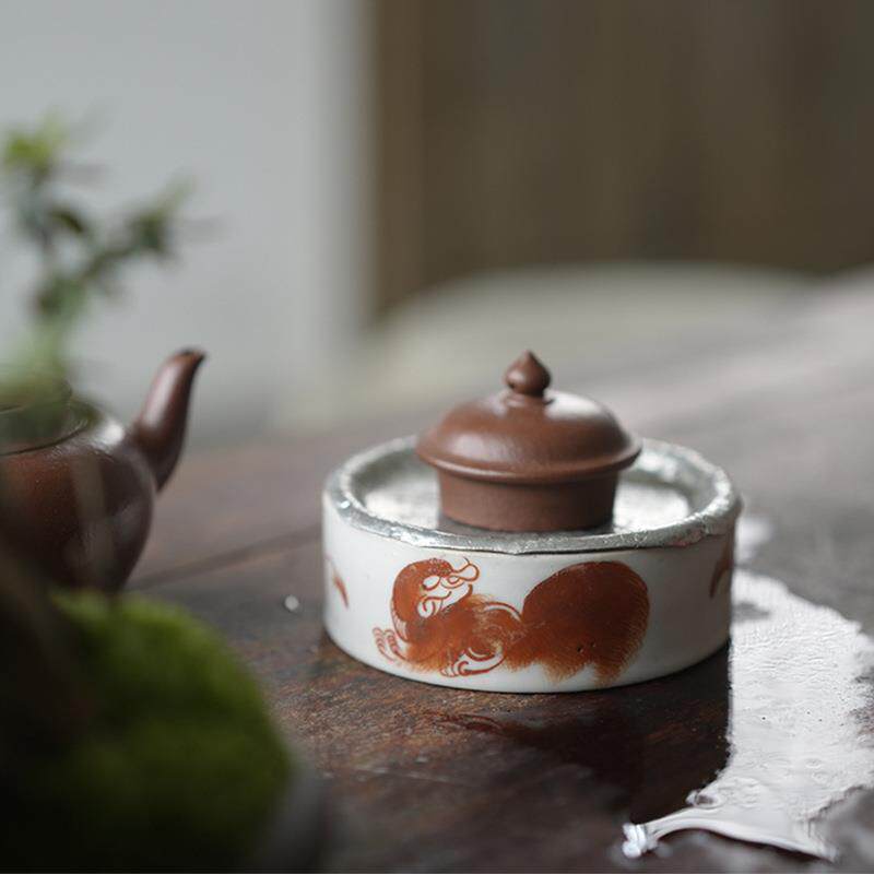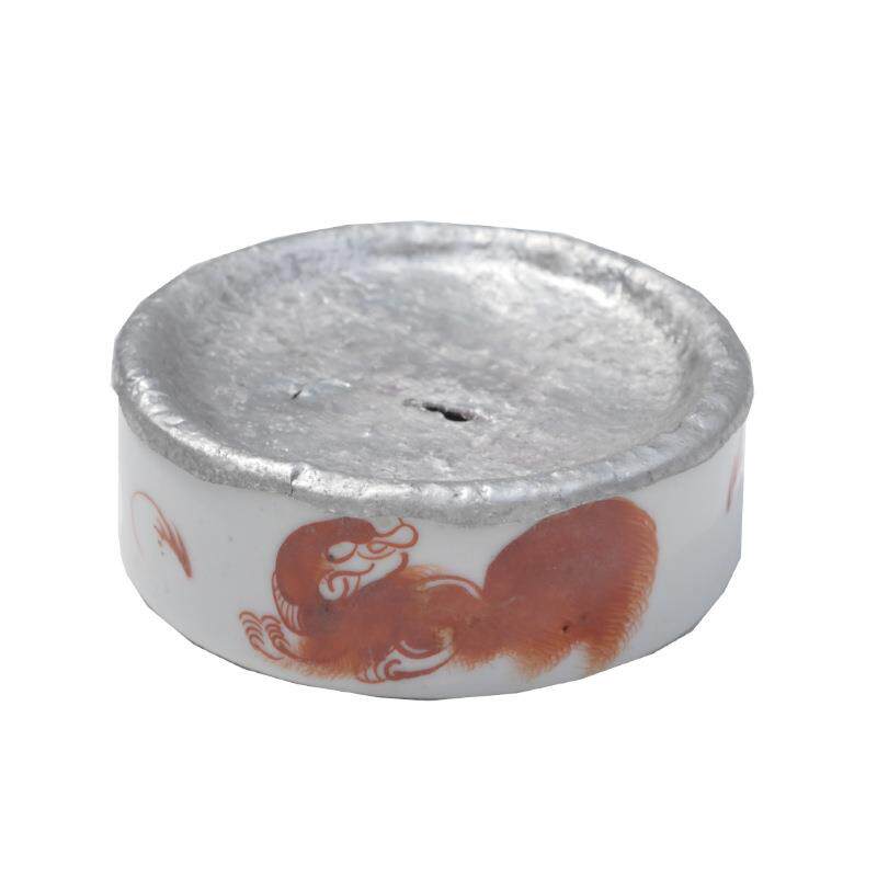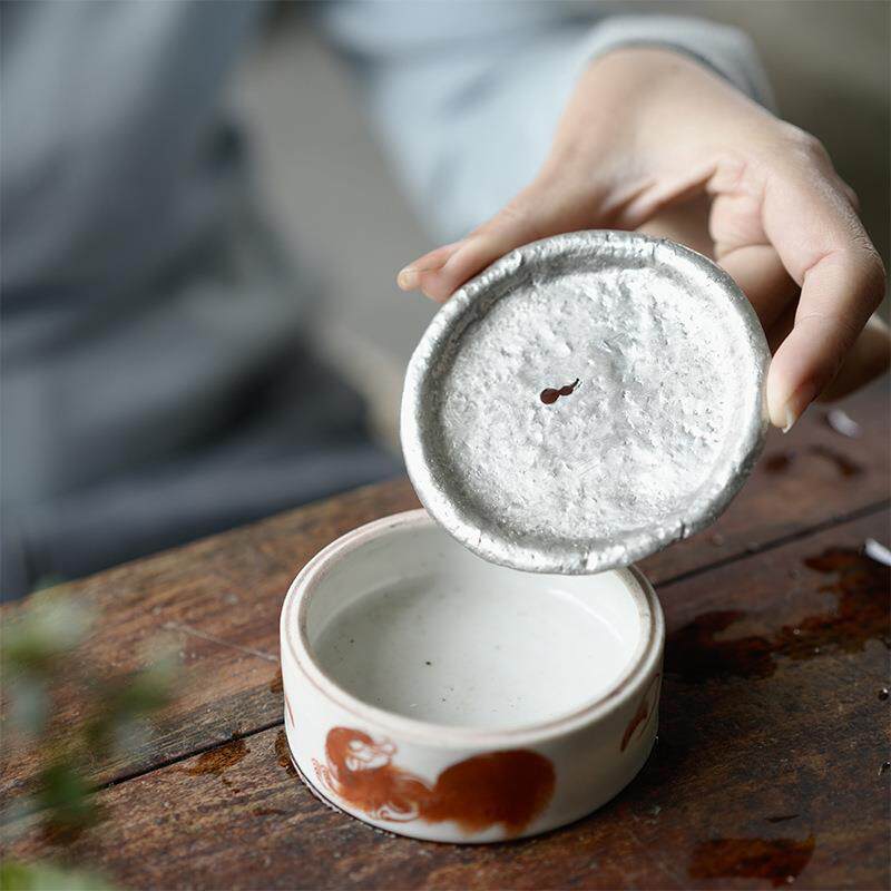 📚 老瓷器纯锡 手工建水盖置两用 茶道配件