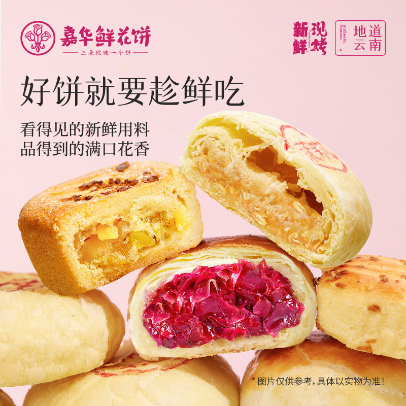 📚 嘉华鲜花饼云南特产旗舰店传统特色玫瑰桂花糕点零食小吃早餐送礼
