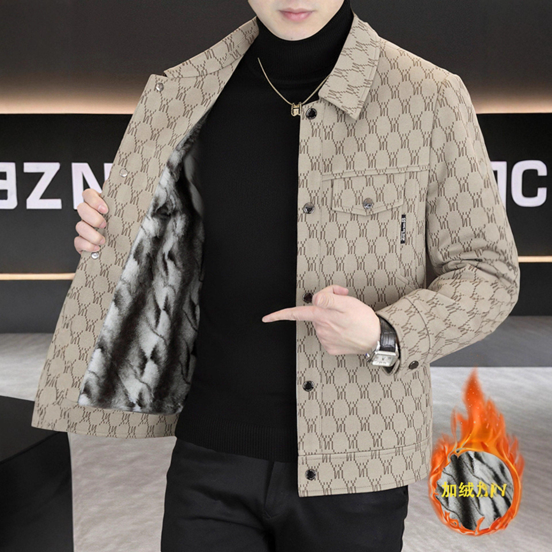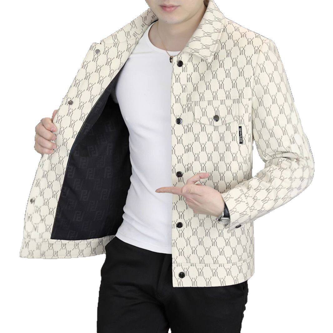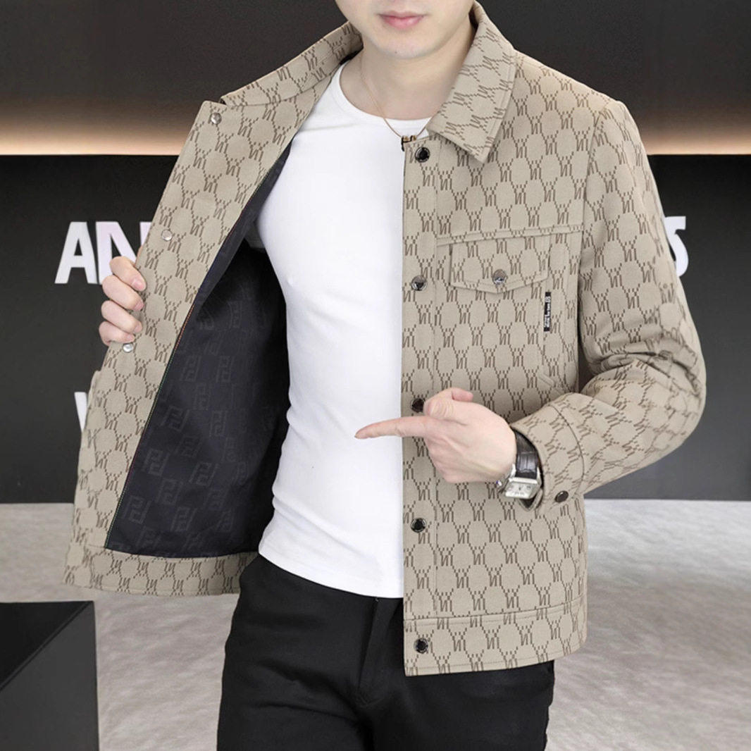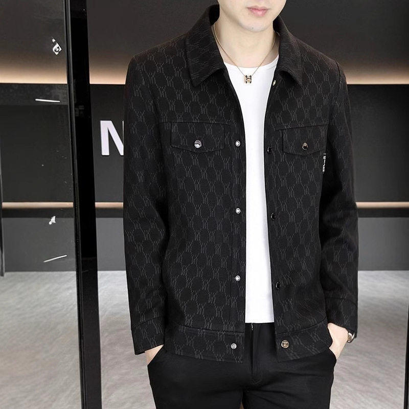 📚 卡比顿男装男士外套春秋季新款高品质翻领休闲格纹上衣工装夹a75
