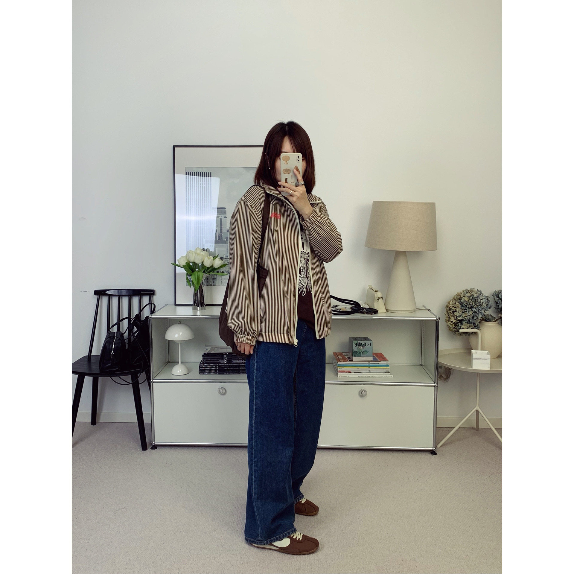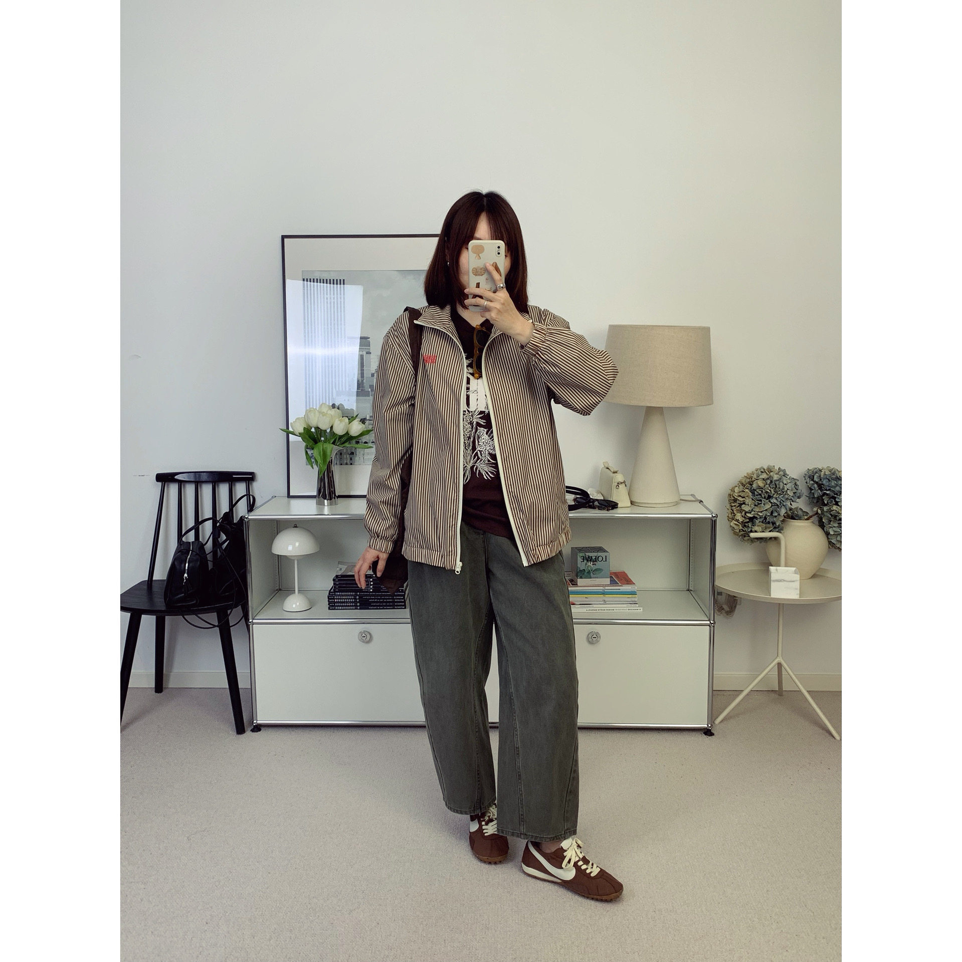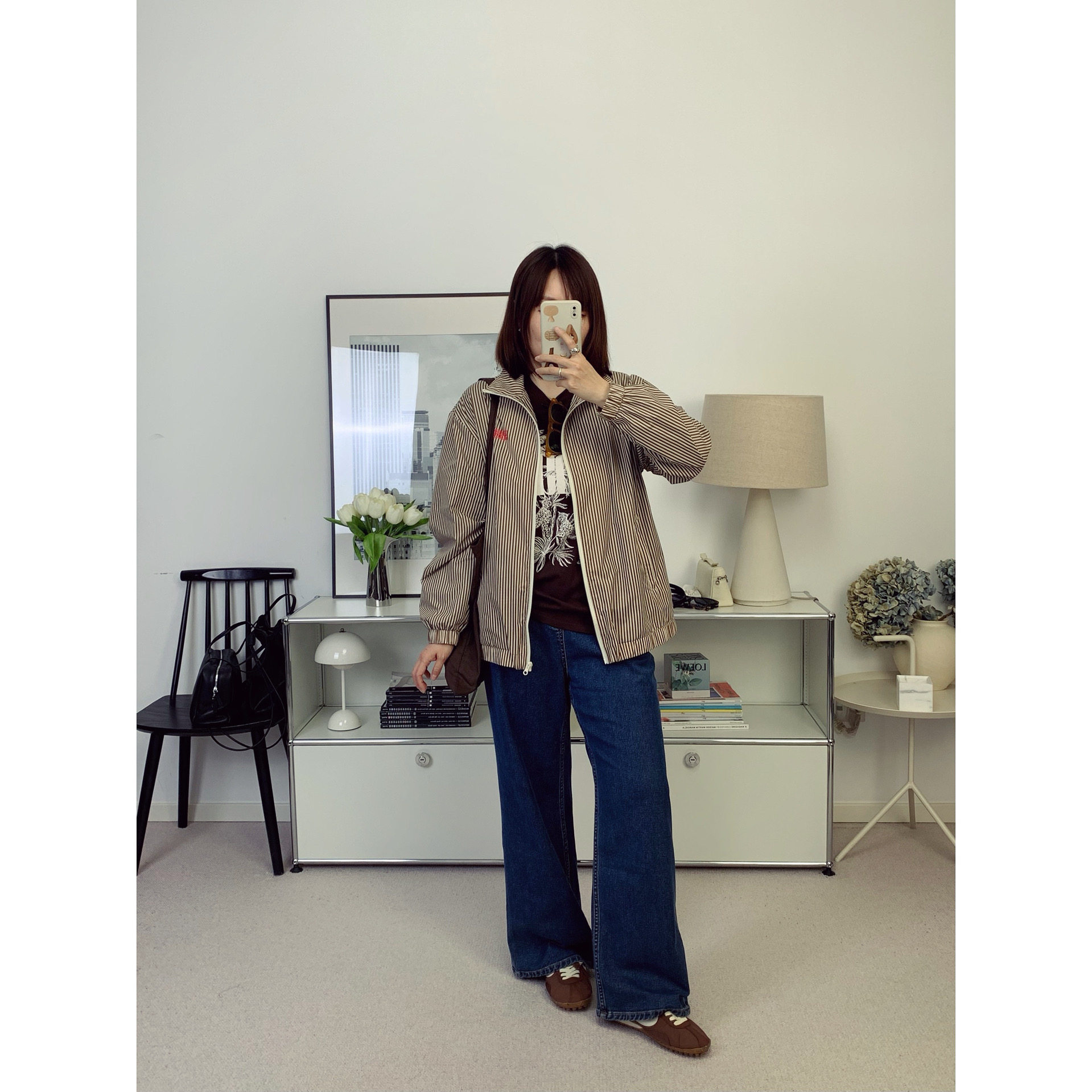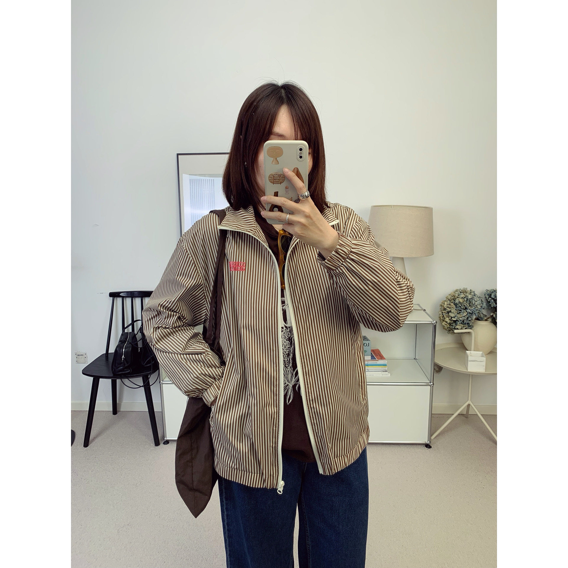 📚 AMV美式复古字母印花复古棕薄款拉链夹克上衣 26春夏新款【鸬鹚】