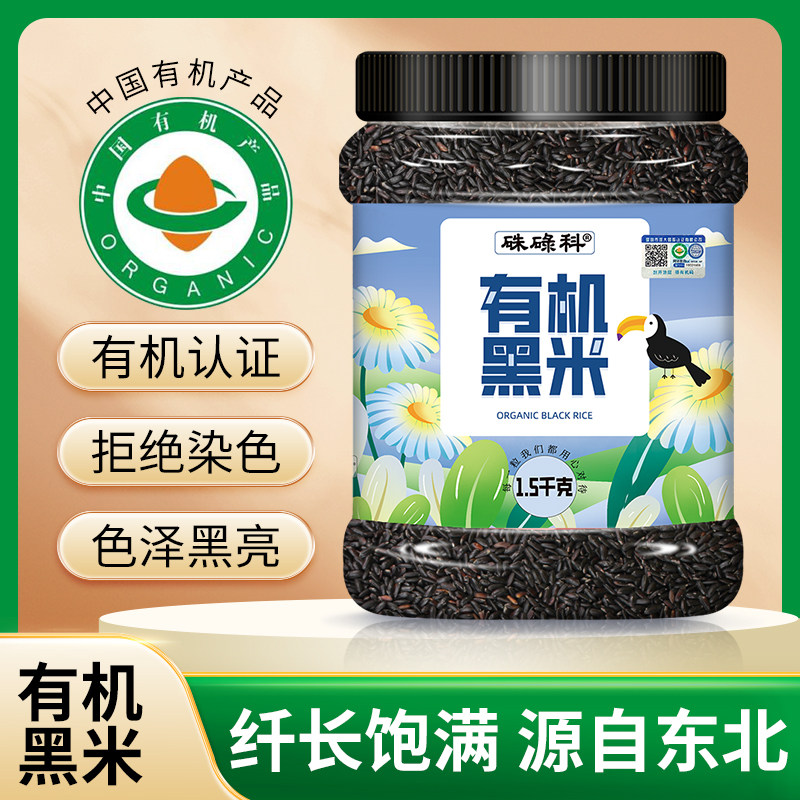 📚 硃碌科东北有机黑米1.5kg罐装杂粮糙米饭粗粮官方旗舰店